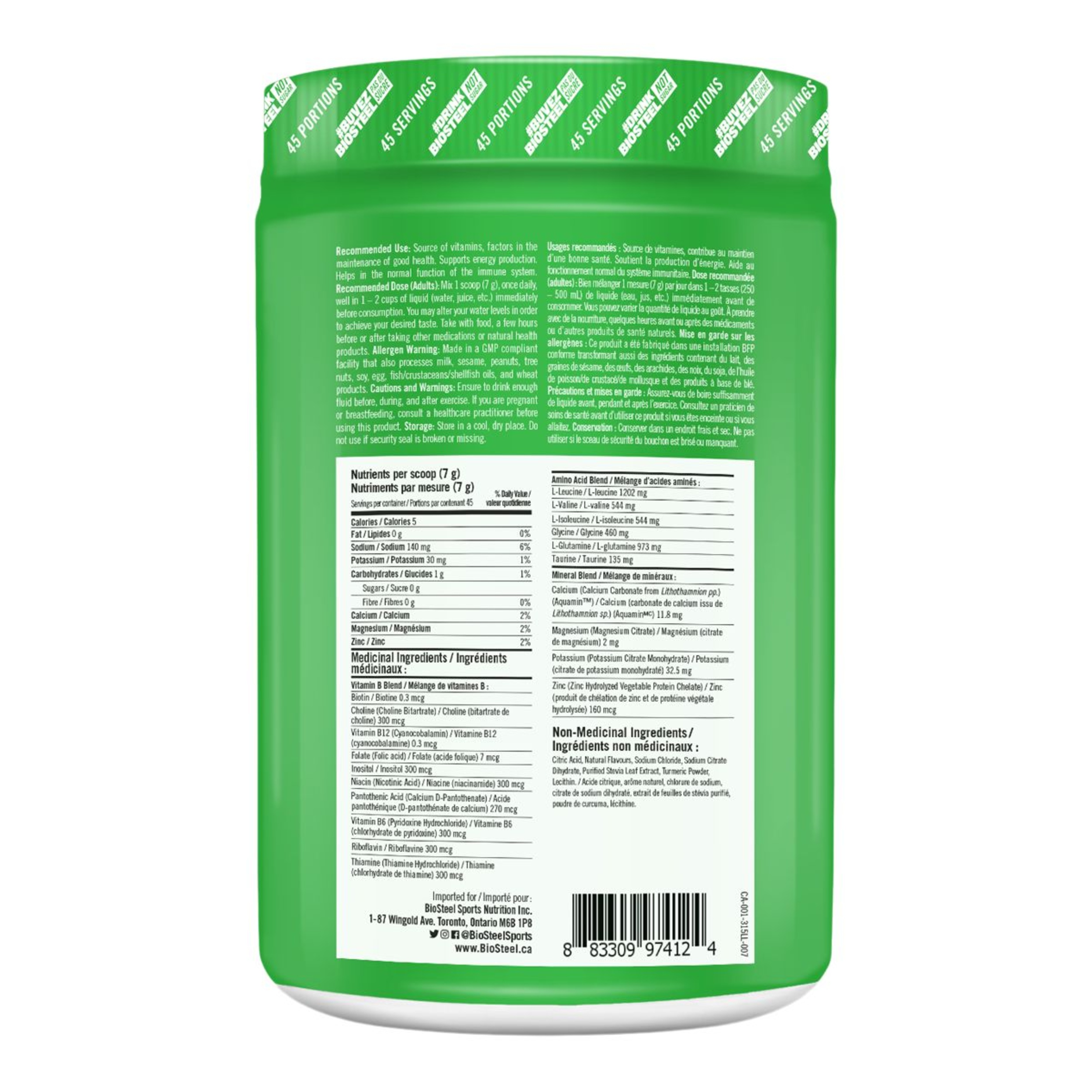 The BioSteel’s High-Performance Sports Hydration Mix provides a hydration and electrolyte replacement, as well as sustained energy without the use of sugar or caffeine. This premium mix contains amino acids, minerals and vitamins which all help reduce fatigue and increase performance whether you’re competing in sport or facing a busy workday. With a vitamin B blend, this hydration mix plays a crucial role in metabolizing fats, carbohydrates, and proteins, which are essential for energy production.
