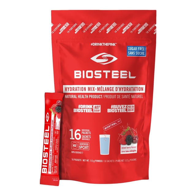 The BioSteel Hydration Mix 16 Count Bag is designed to keep you hydrated throughout the day in the most natural way possible. This 3-in-1 sugar-free formula is made from clean, quality ingredients and contains no artificial flavours, sweeteners, or colours. The BioSteel Hydration Mix supports overall health and the normal function of your immune system.