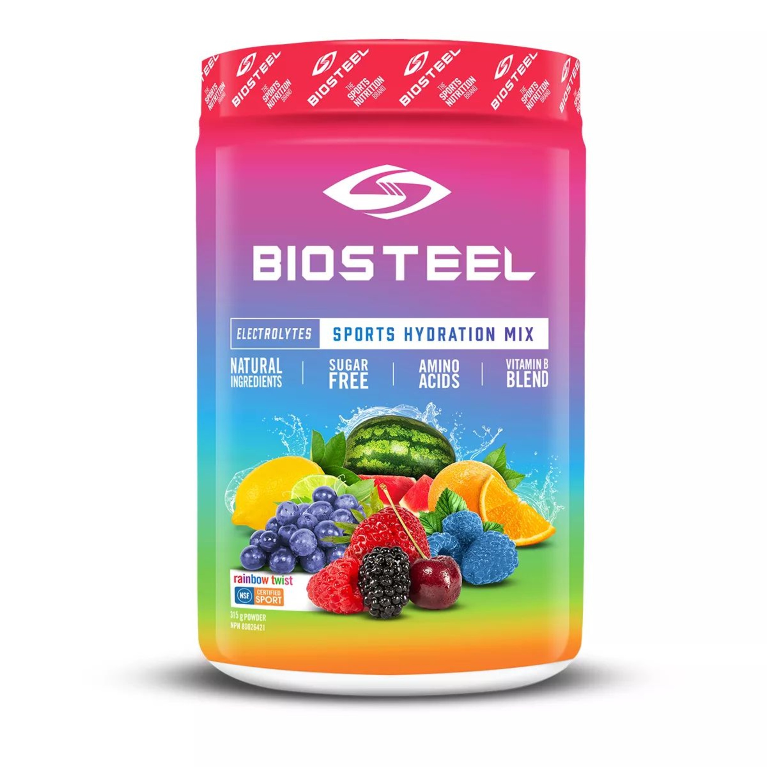 The BioSteel Rainbow Twist Hydration Mix 315G Tub Powder is an electrolyte and hydration mix that provides sustained healthy energy while reducing fatigue. Without sugar or caffeine, this hydration mix includes Vitamin B complex and is guten and soy free.