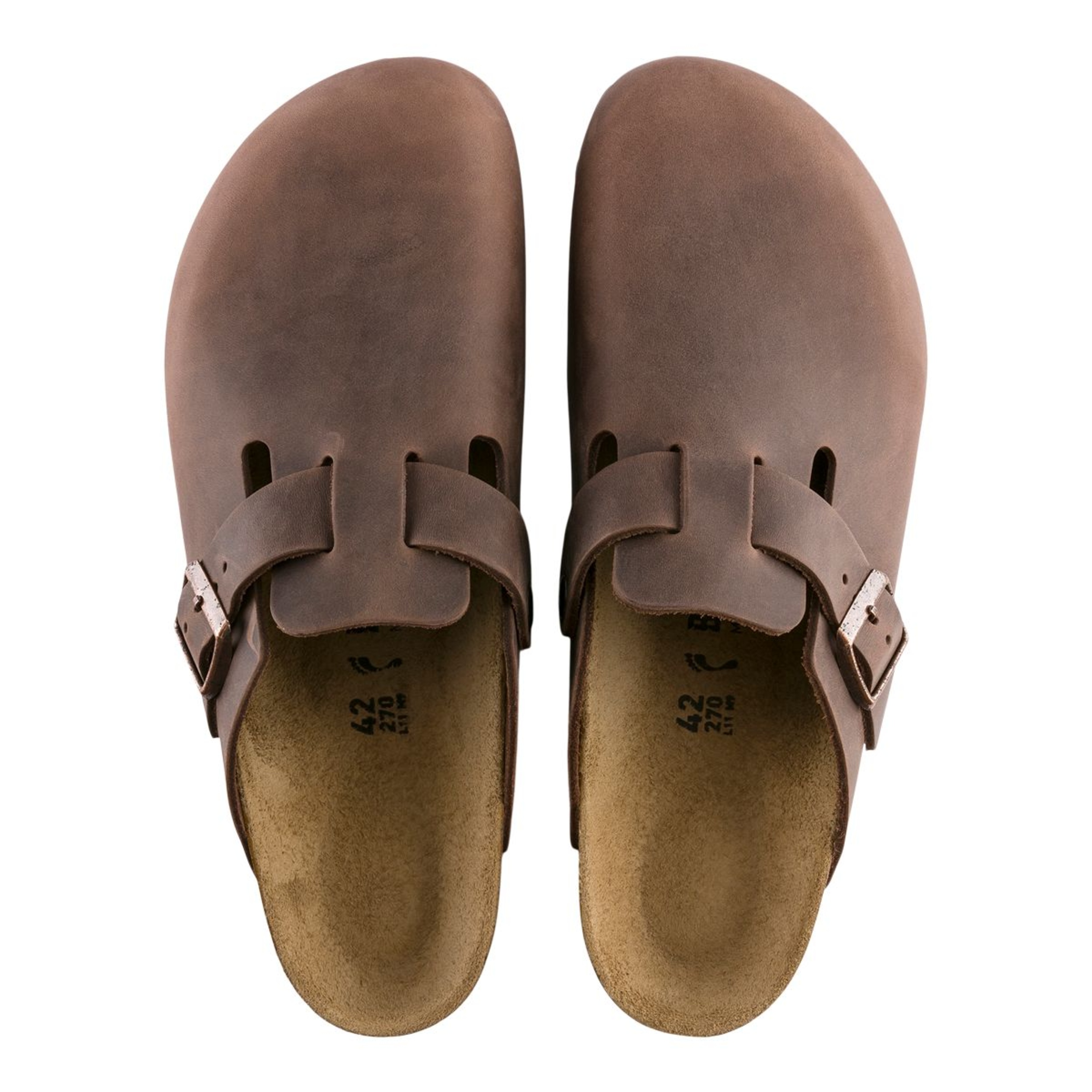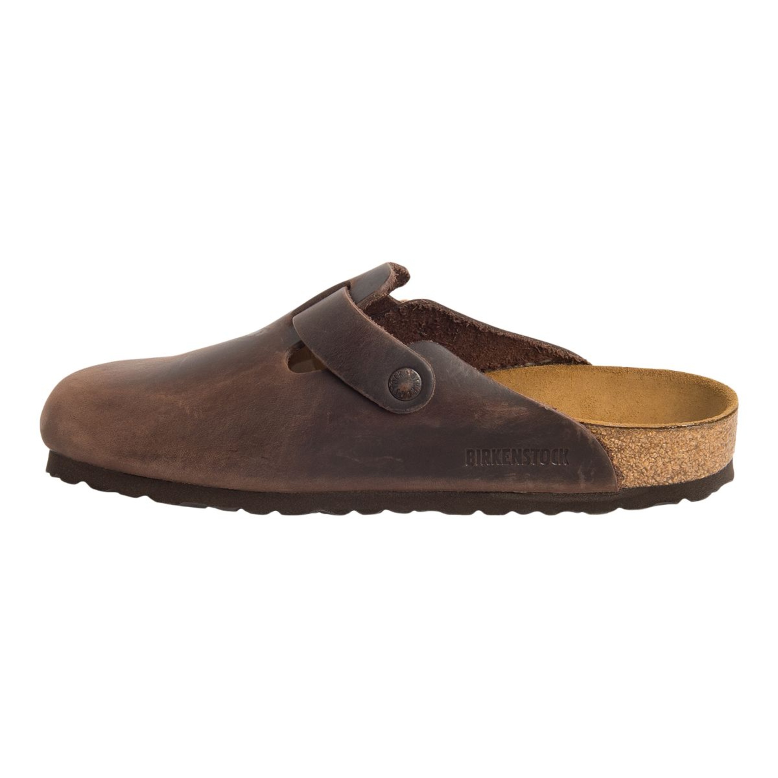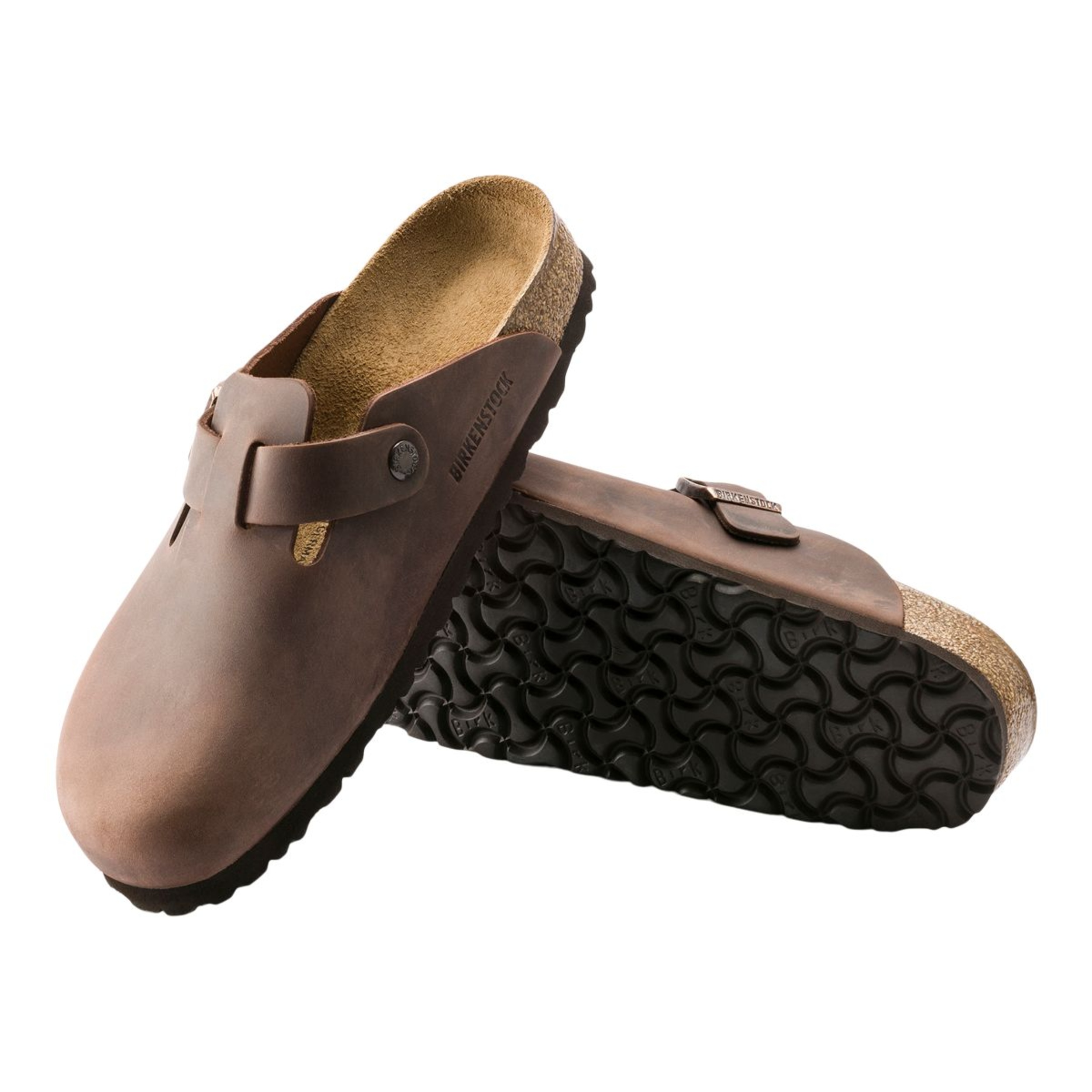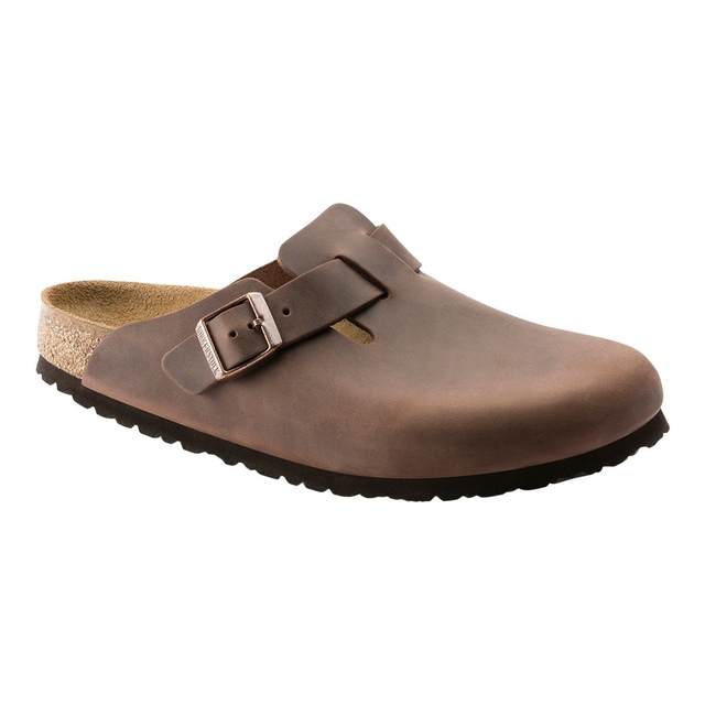 The Birkenstock Unisex Boston Oiled Leather Clogs are a versatile, year-round classic featuring an anatomically shaped cork-latex footbed for superior arch support, a deep heel cup, and a roomy toe box that ensures all-day comfort. Crafted from durable yet stylish thick oiled nubuck leather with an open-selvage finish, these clogs boast a sophisticated individual design complemented by an adjustable metal tongue buckle strap for a customized fit and a lightweight EVA outsole for cushioned shock absorption. The luxurious suede lining enhances the overall comfort and style.