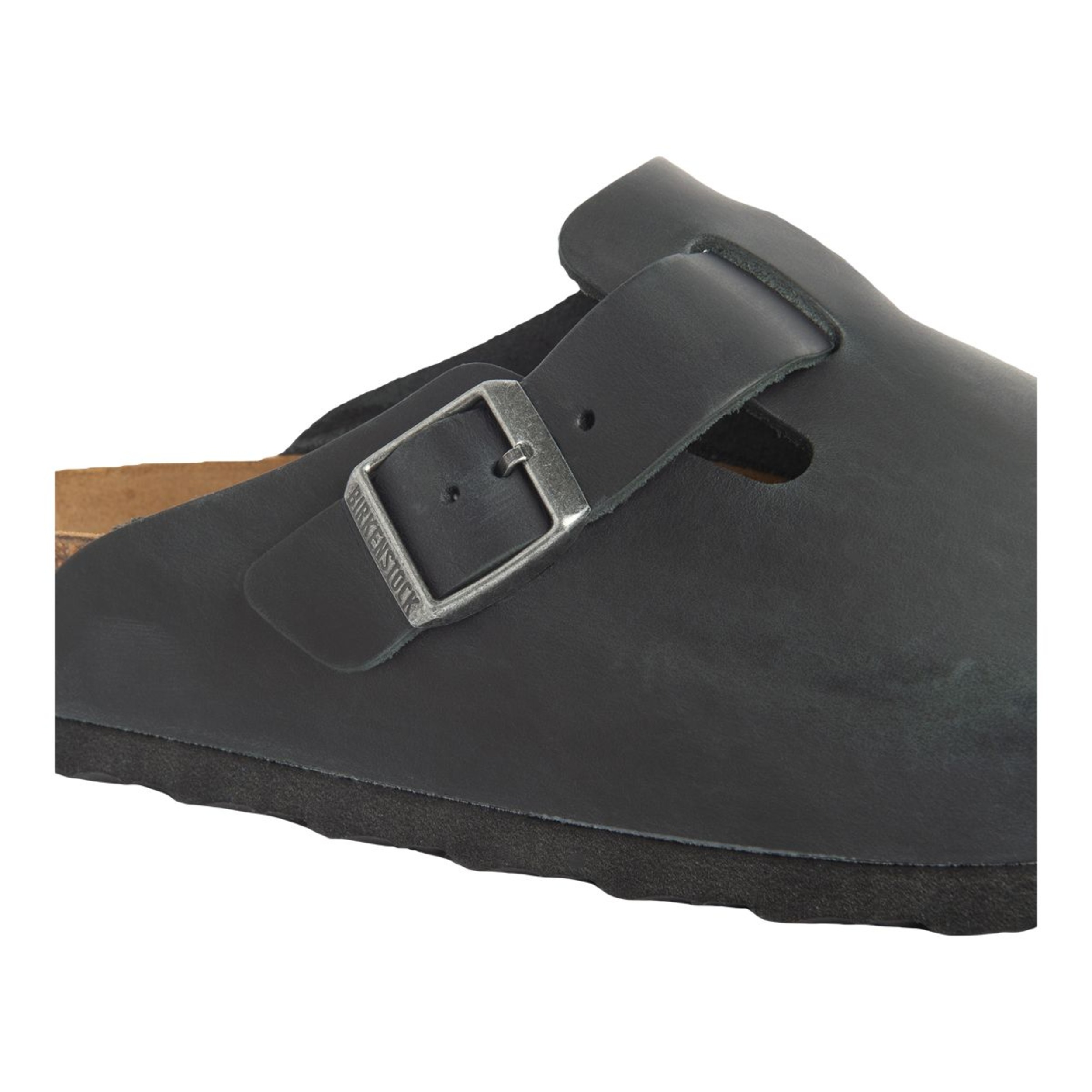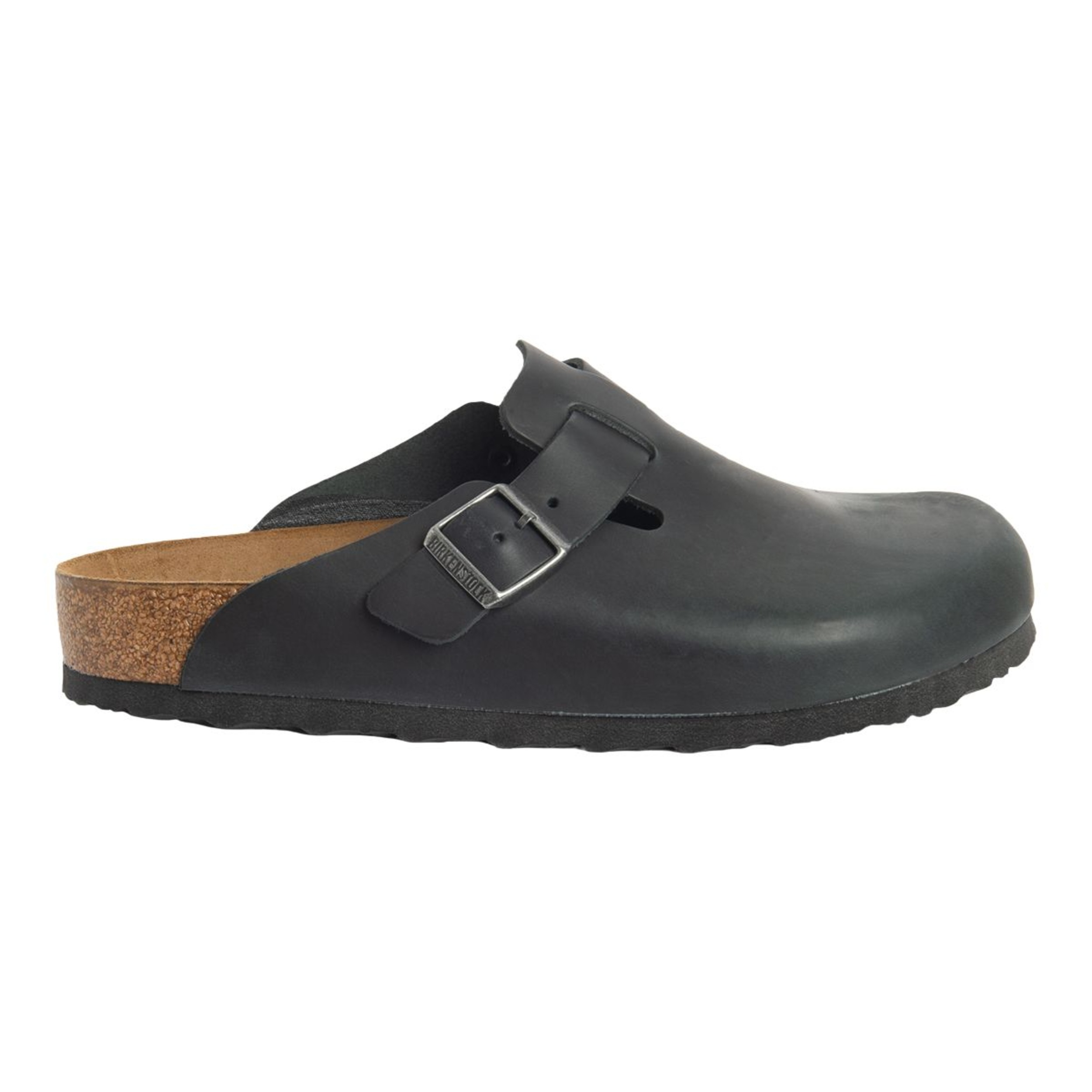 The Birkenstock Unisex Boston Oiled Leather Clogs are a versatile, year-round classic featuring an anatomically shaped cork-latex footbed for superior arch support, a deep heel cup, and a roomy toe box that ensures all-day comfort. Crafted from durable yet stylish thick oiled nubuck leather with an open-selvage finish, these clogs boast a sophisticated individual design complemented by an adjustable metal tongue buckle strap for a customized fit and a lightweight EVA outsole for cushioned shock absorption. The luxurious suede lining enhances the overall comfort and style.