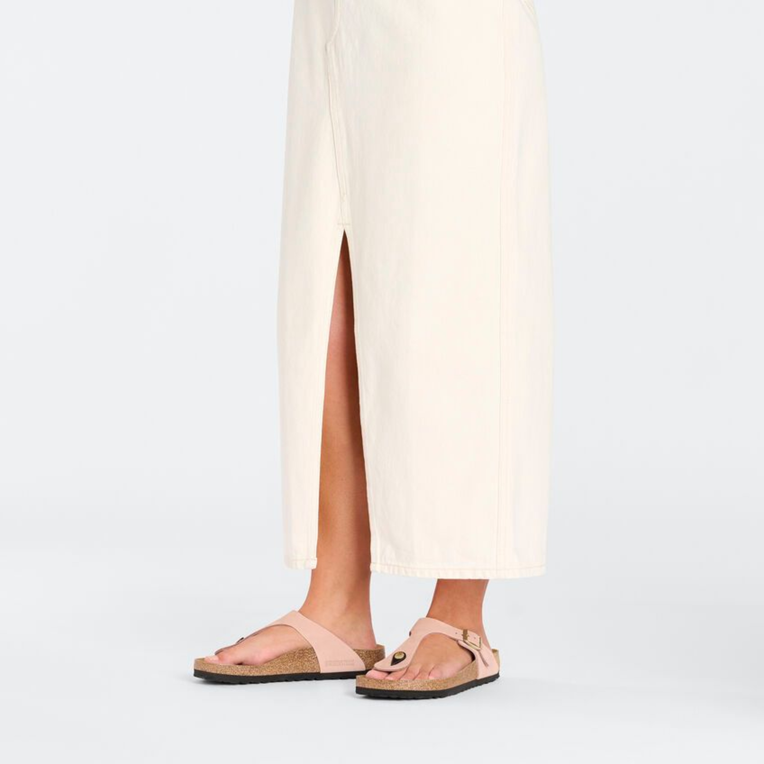 Anatomically correct cork-latex footbed cushions your feet with each step