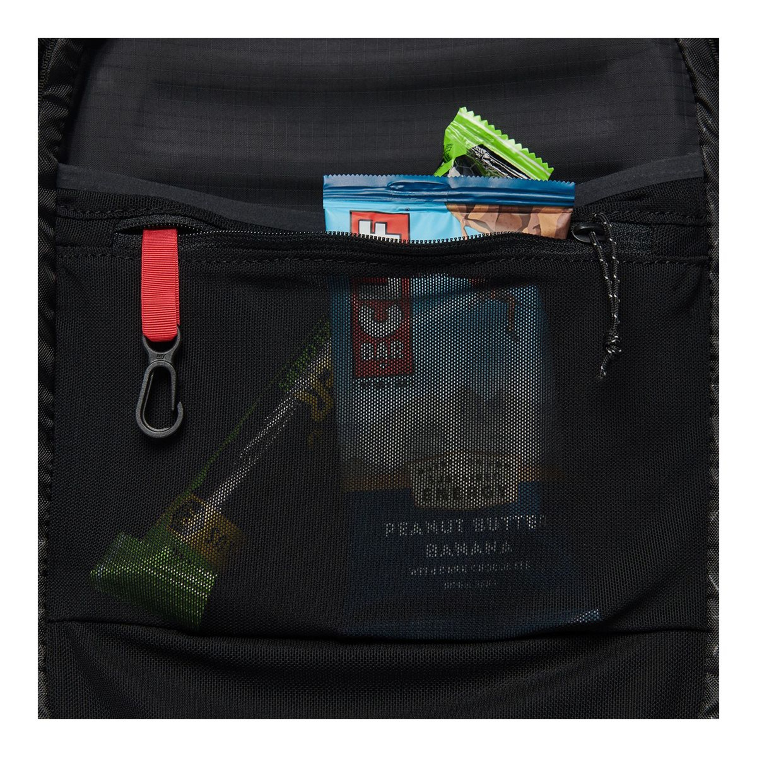 Includes a side stash, zippered pockets for soft flasks, and other pockets for storing your essentials