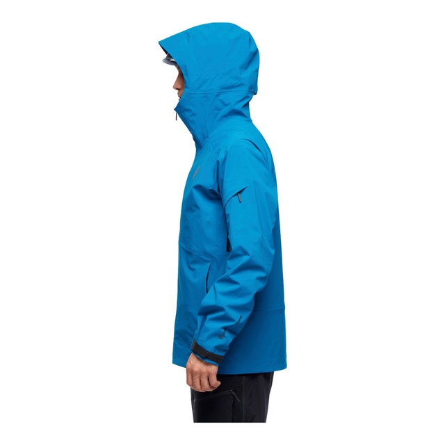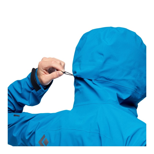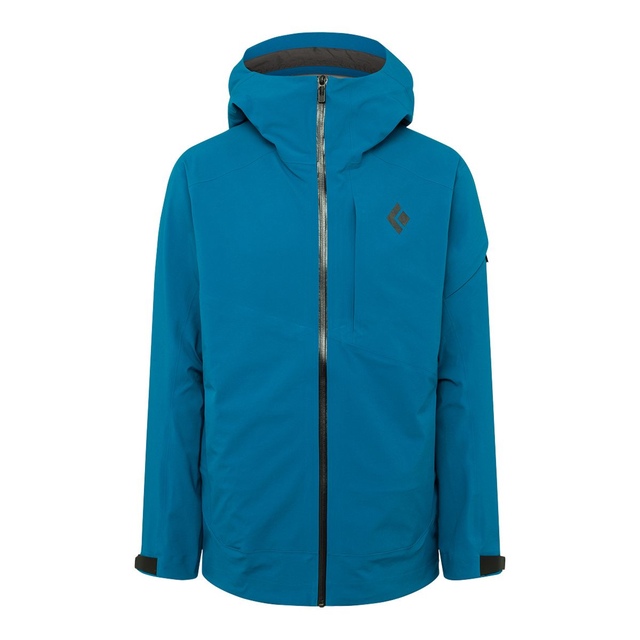 The Black Diamond Men's Recon Stretch Ski Shell Jacket combines performance with comfort for skiers. Crafted with a 4-way stretch woven fabric from Japan with a jersey backer, this ski shell jacket delivers mobility and breathability. Black Diamond's innovative BD.dry™ technology provides waterproof and windproof protection, keeping you safer during outdoor adventures. The ski-helmet compatible, adjustable hood shields you from the elements, while pit zip vents help to keep you cool. This jacket offers many storage options with a waterproof PU-coated center front zipper, a chest pocket for essentials, and two internal drop pockets for skins or extra layers. The removable powder skirt adds preparedness for unexpected conditions.