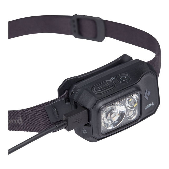 The compact Black Diamond Storm 500-R Headlamp is meant for outdoor enthusiasts. It's easy to adjust the brightness level, and the Brightness Memory feature saves your preferred brightness setting. This outdoor headlamp has multiple light modes: proximity, distance, night vision, and strobe. Ready for the outdoors, this headlamp has an IP67 waterproof rating. The rechargeable headlamp has a 2400 mAh battery that provides longer-lasting illumination.
