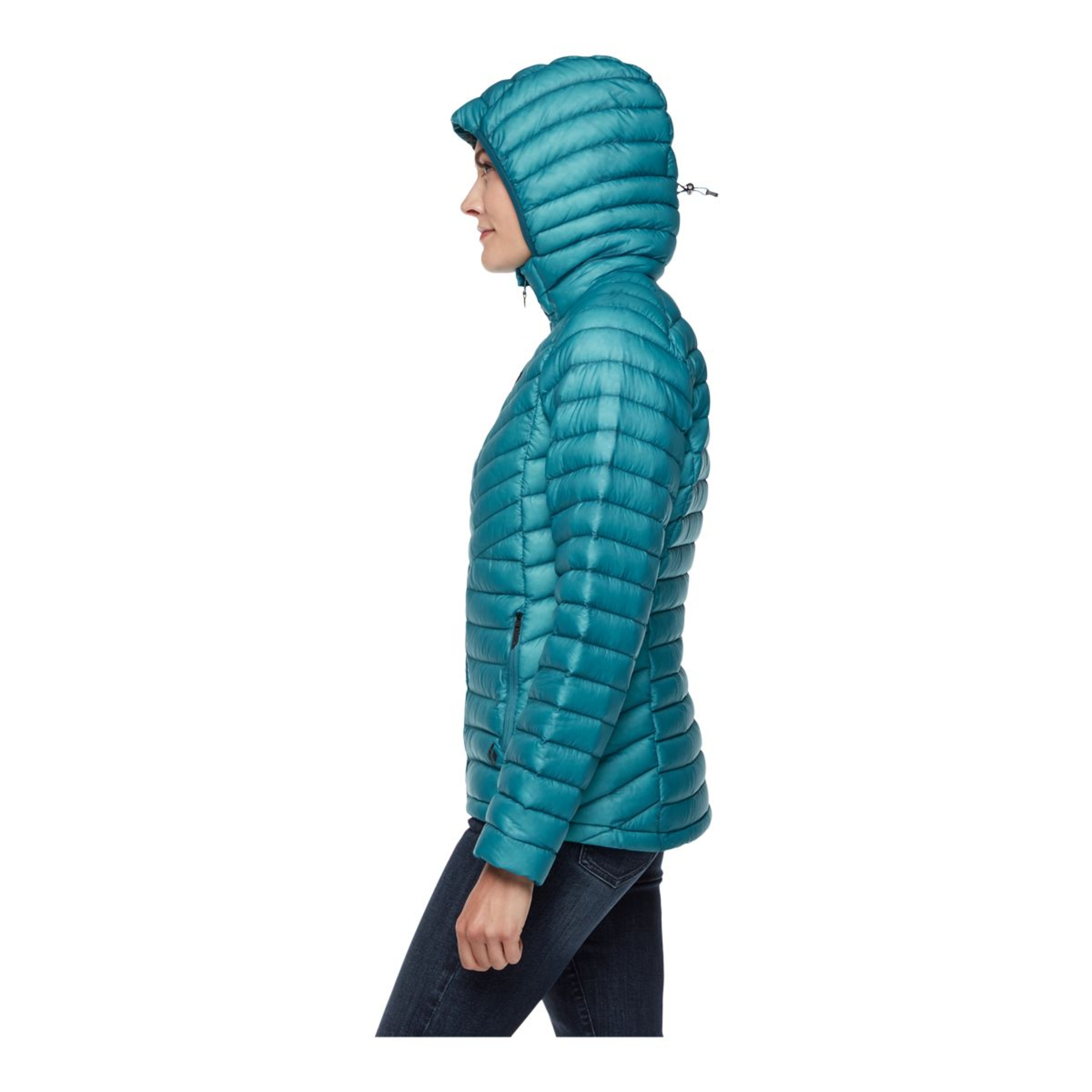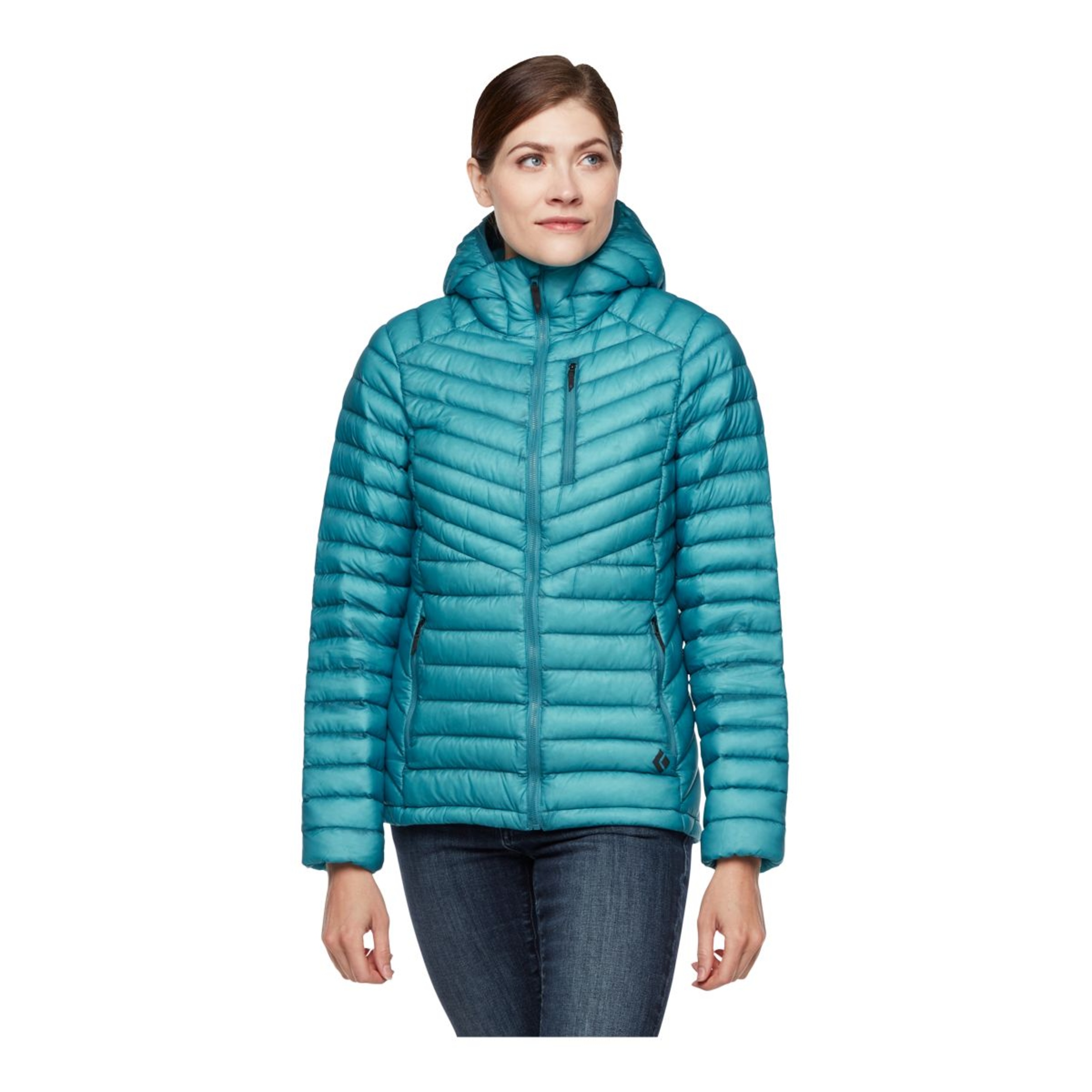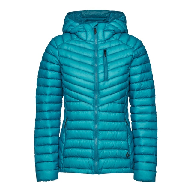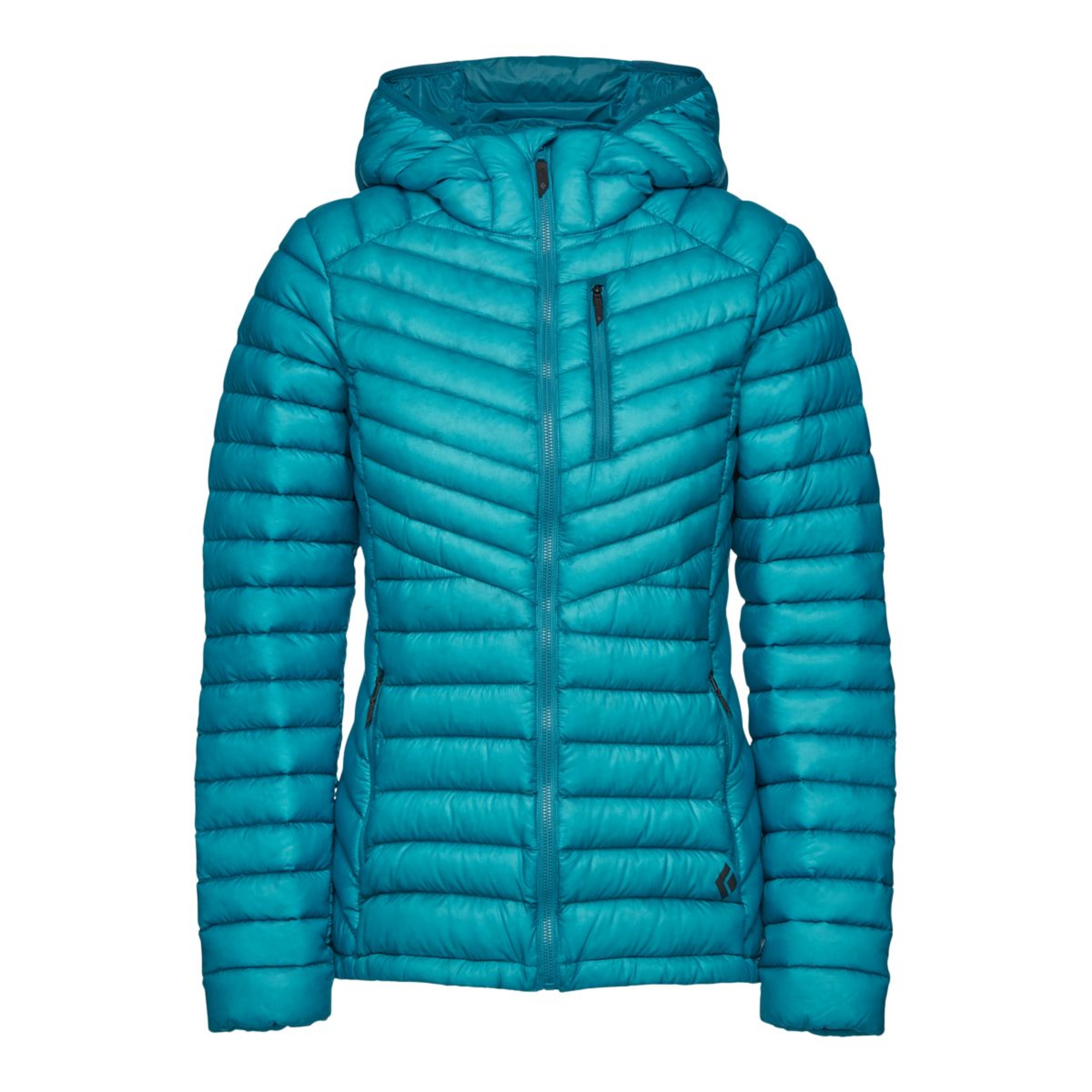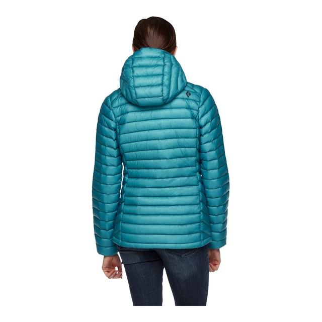 The Black Diamond Women's Approach Down Hooded Jacket fuses performance and sustainability in an ultralight nylon ripstop shell. It has a GTT Empel DWR finish to keep you dry and 800-fill RDS certified goose down insulation to keep you warm. In a packable design, this Black Diamond hoodie is ideal for the on-the-go adventurer.
