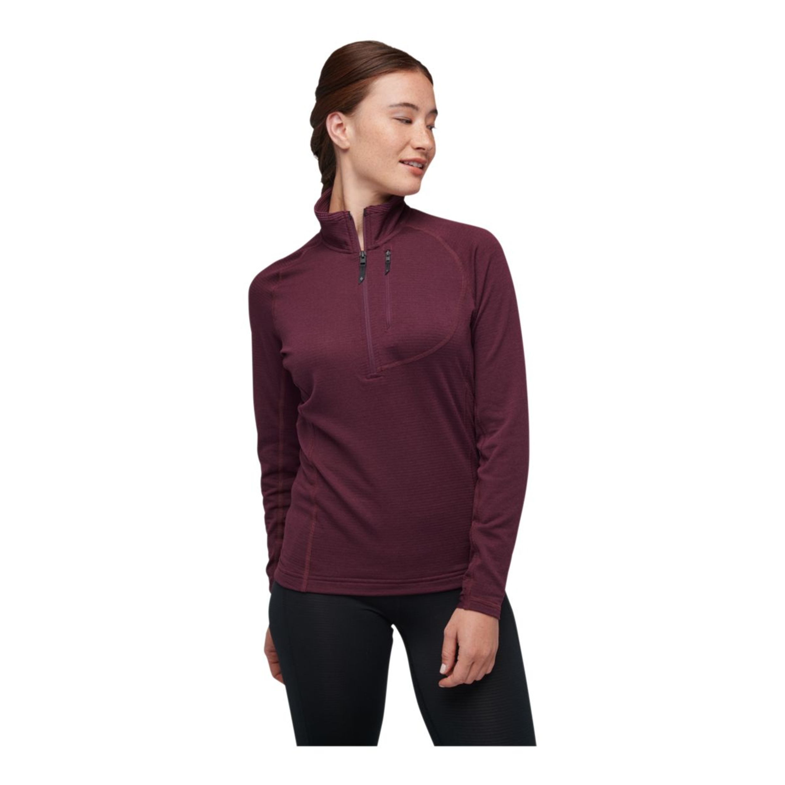The Black Diamond Women's Coefficient LT Quarter Zip Pullover is a lightweight performance midlayer designed for high-output activities. Made with Polartec® Power Grid® fleece, it features a gridded interior for enhanced breathability and moisture-wicking. The quarter-zip design allows quick heat release, while the hoodless style makes layering with jackets effortless.