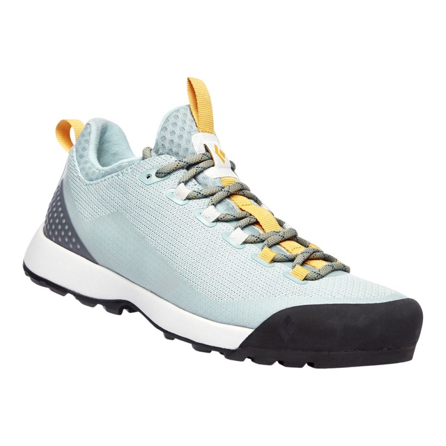Engineered for speed approaches, the Black Diamond Mission LT is the approach shoe you want for mountain adventures that push the barriers in both scale and technical terrain. Designed with a sock-like, bootie fit, that’s reinforced with a webbing cinch system, the Mission LT is lightweight and slips on to provide security and comfort that lasts all day. The Mission LT features our signature EnduroKnit, which is a one-piece, ultra-breathable upper for lasting temperature regulation that’s hyper-durable for season after season of abuse. A tuned EVA midsole provides ample stiffness for technical precision, while remaining comfortable and the nylon rock plate provides protection. The Mission LT’s high-performance BlackLabel-Mountain rubber is super sticky, allowing you to grip through technical moves on 5th class terrain with ease, and the rubber toe protection gives the Mission LT added security. Multiple webbing loops give you plenty of tagging and stowing options when the approach ends and the hard climbing begins.