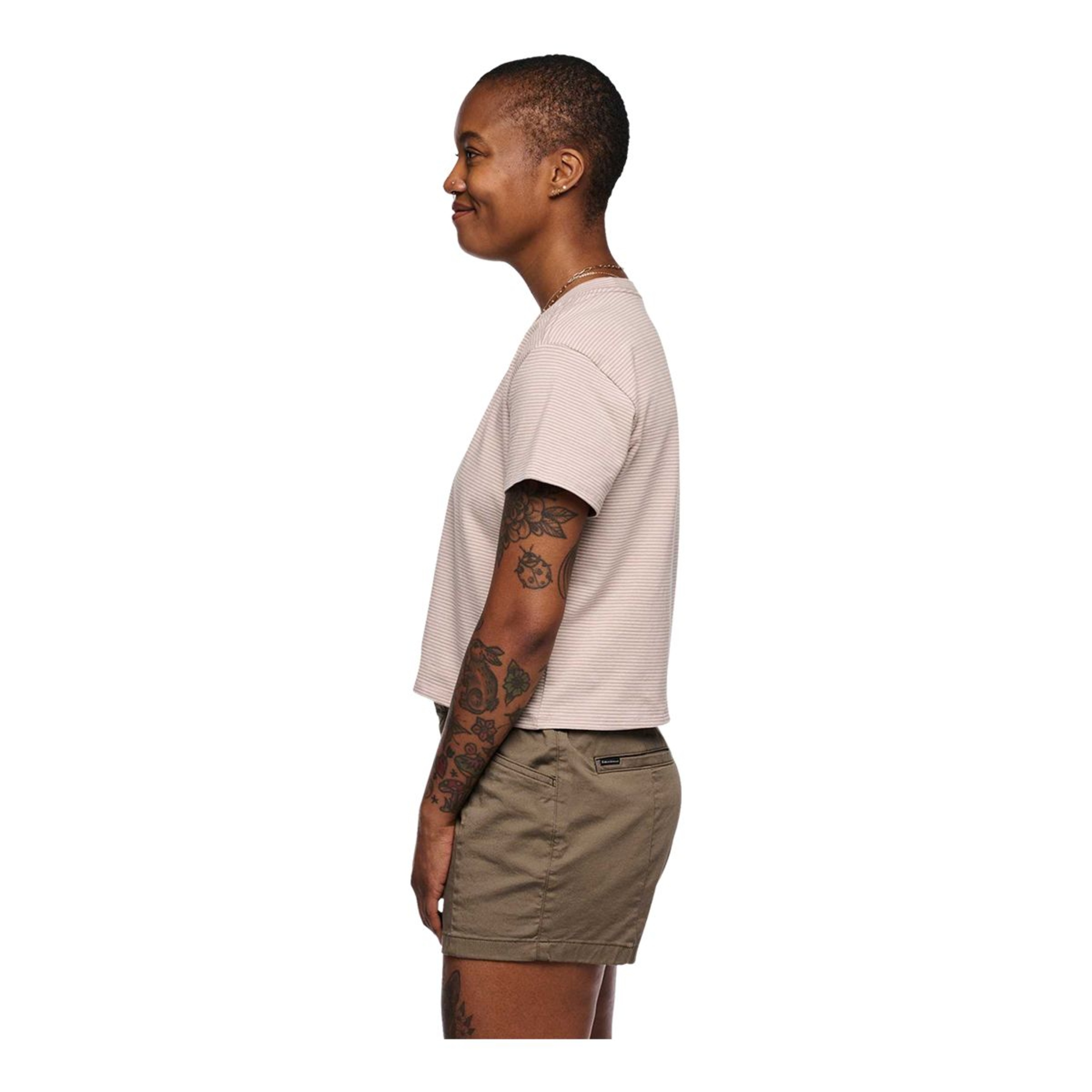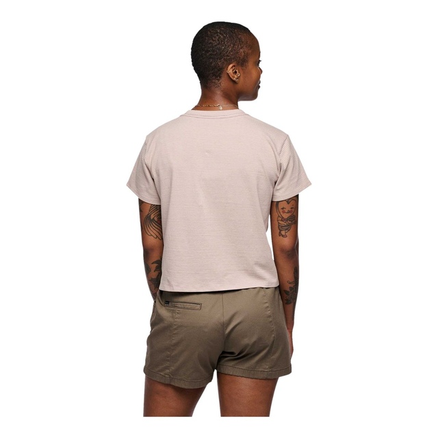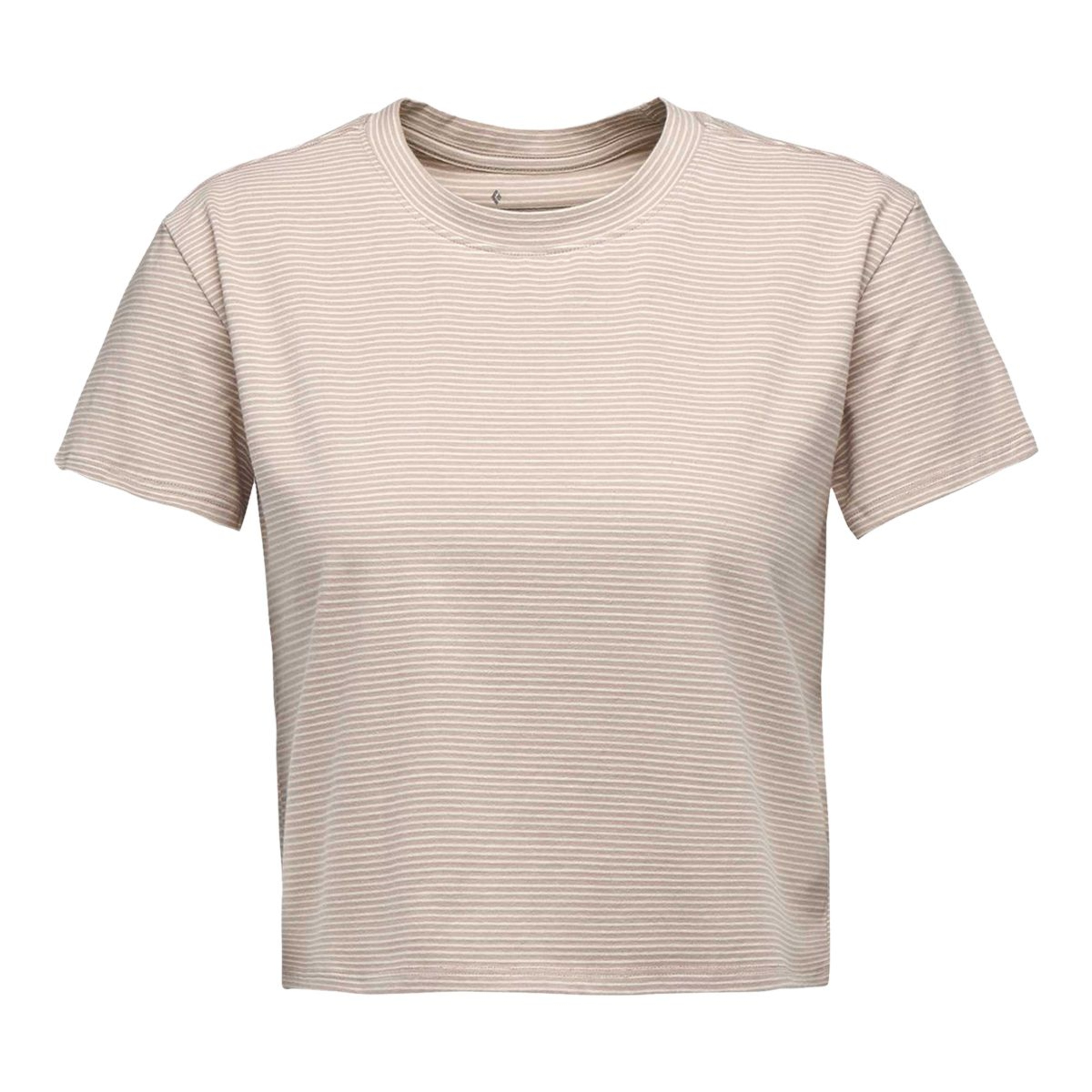 The Black Diamond Women's Stripe Crop T Shirt is a performance top made from cotton fabric. This durable T shirt features a pattern designed for free movement and a full range of motion. Black Diamond uses water-based inks in this eco-friendly t shirt for the graphics and provides a comfortable fit focused on athletic performance.
