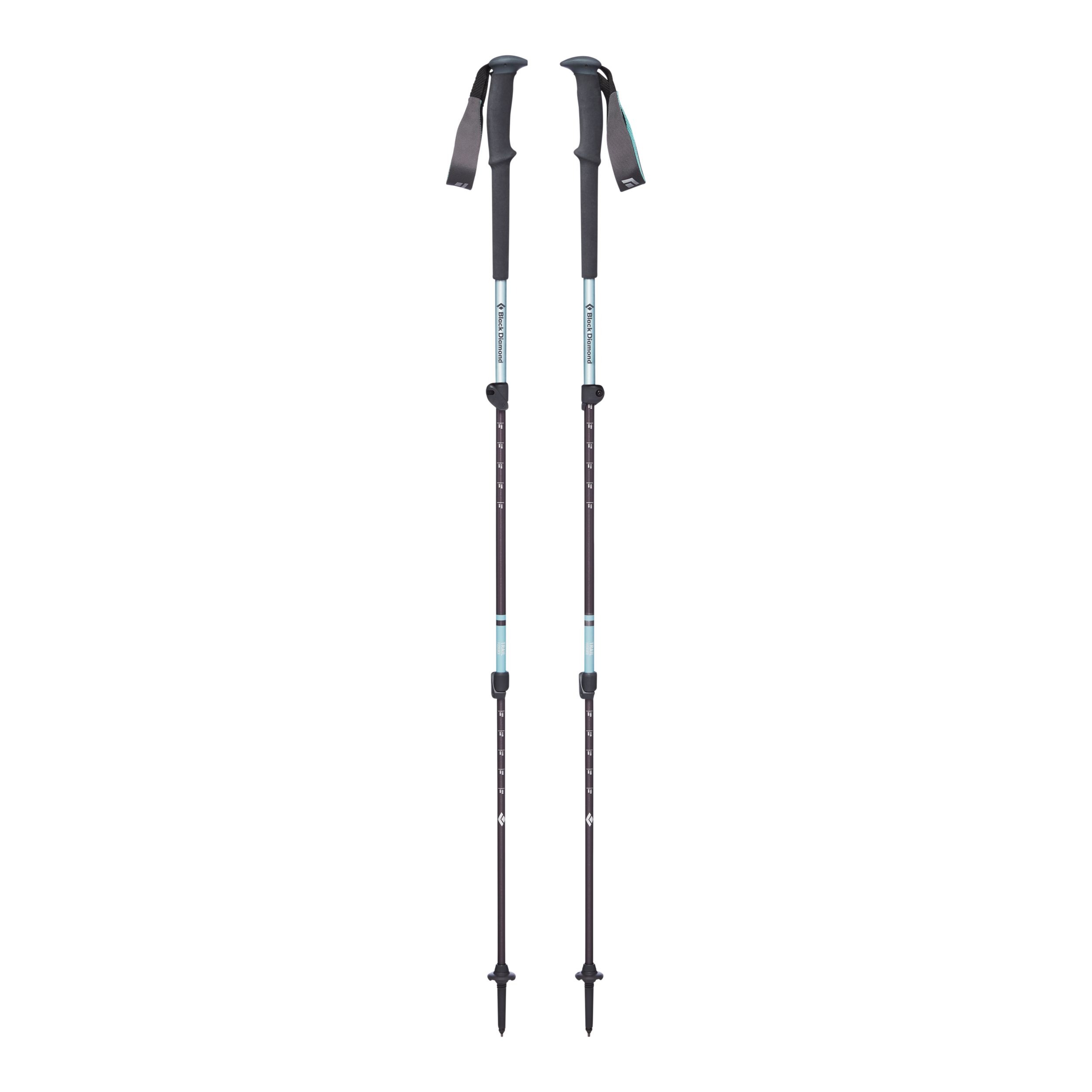 The Black Diamond Women's Trail Trekking Poles feature a women-specific soft rubber grip and solution strap, enhancing security and control. They include double FlickLocks, interchangeable carbide Tech Tips and a 38mm trekking basket. The ski-compatible ferrule on these Black Diamond poles accepts 100mm powder baskets for deep snow use.