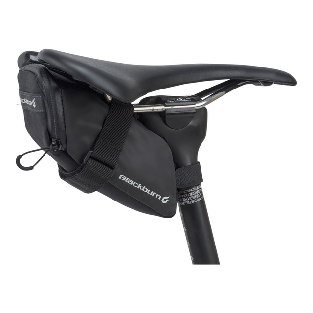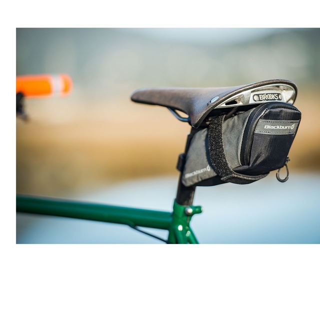 Dual-sided seat post hook & loop strap that won't chafe and ruin your expensive bib shorts! Water resistant - Extra protection against the elements