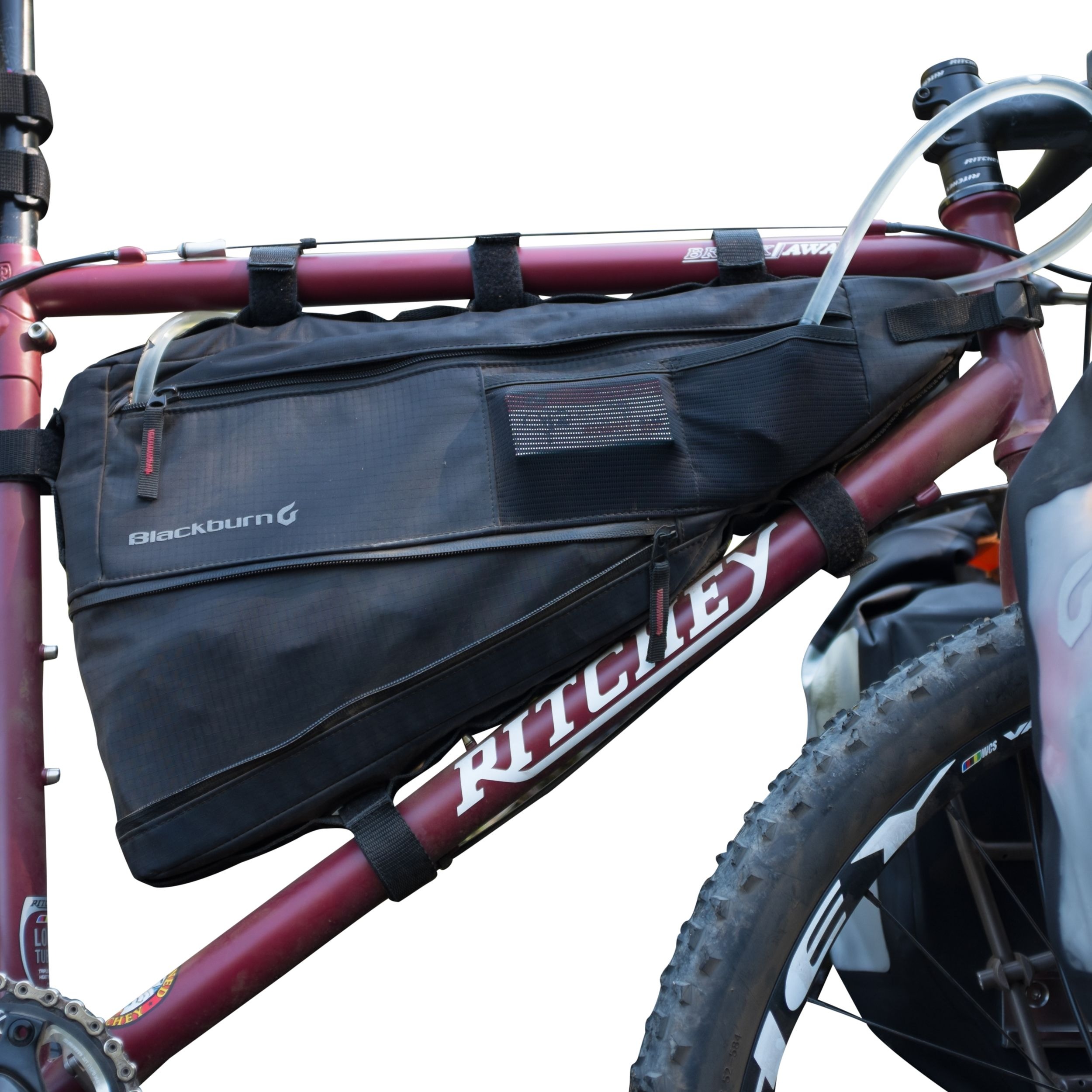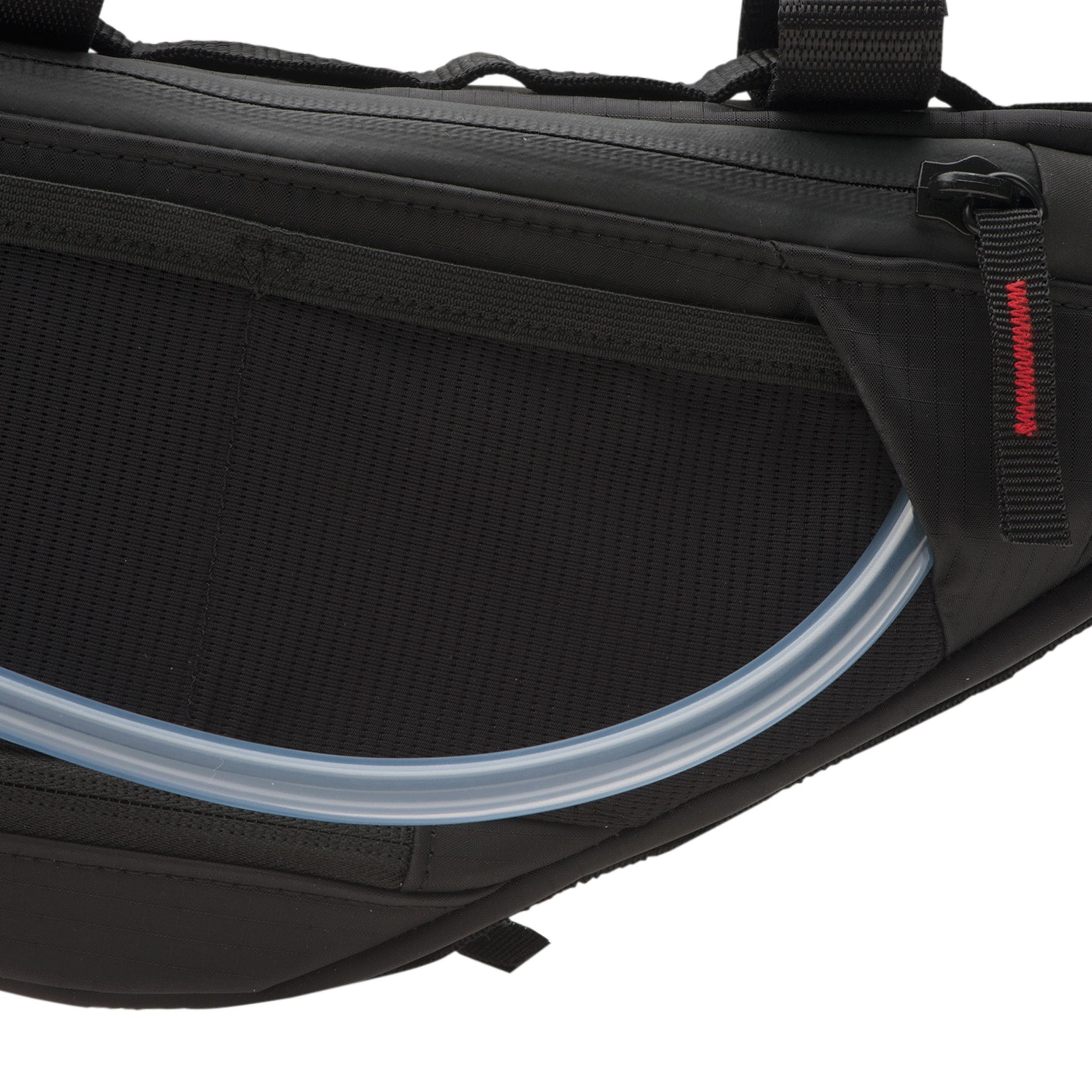 HOSE PORT — Outpost Elite frame bags feature a hose port to allow for the storage of a water reservoir and/or a cache battery to get dense, heavy products to the lowest center of gravity.