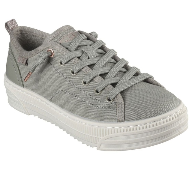 Wear BOBS Women's Copa Shoes and hit the cabana lifestyle with unmatched comfort! This versatile vegan style features a canvas and faux leather upper with a lace-up front, platform rubber midsole, and Skechers Memory Foam™ insole cushioning. For every BOBS purchase, a donation is made to animals in need.