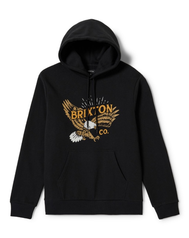 Stay comfortable and stylish with the Brixton Men's Keller Pullover Hoodie. Made from a medium-weight recycled fleece blend, this hoodie offers both warmth and sustainability. The bold crackle ink bald eagle graphic on the chest adds a unique touch, making it perfect for any casual occasion.