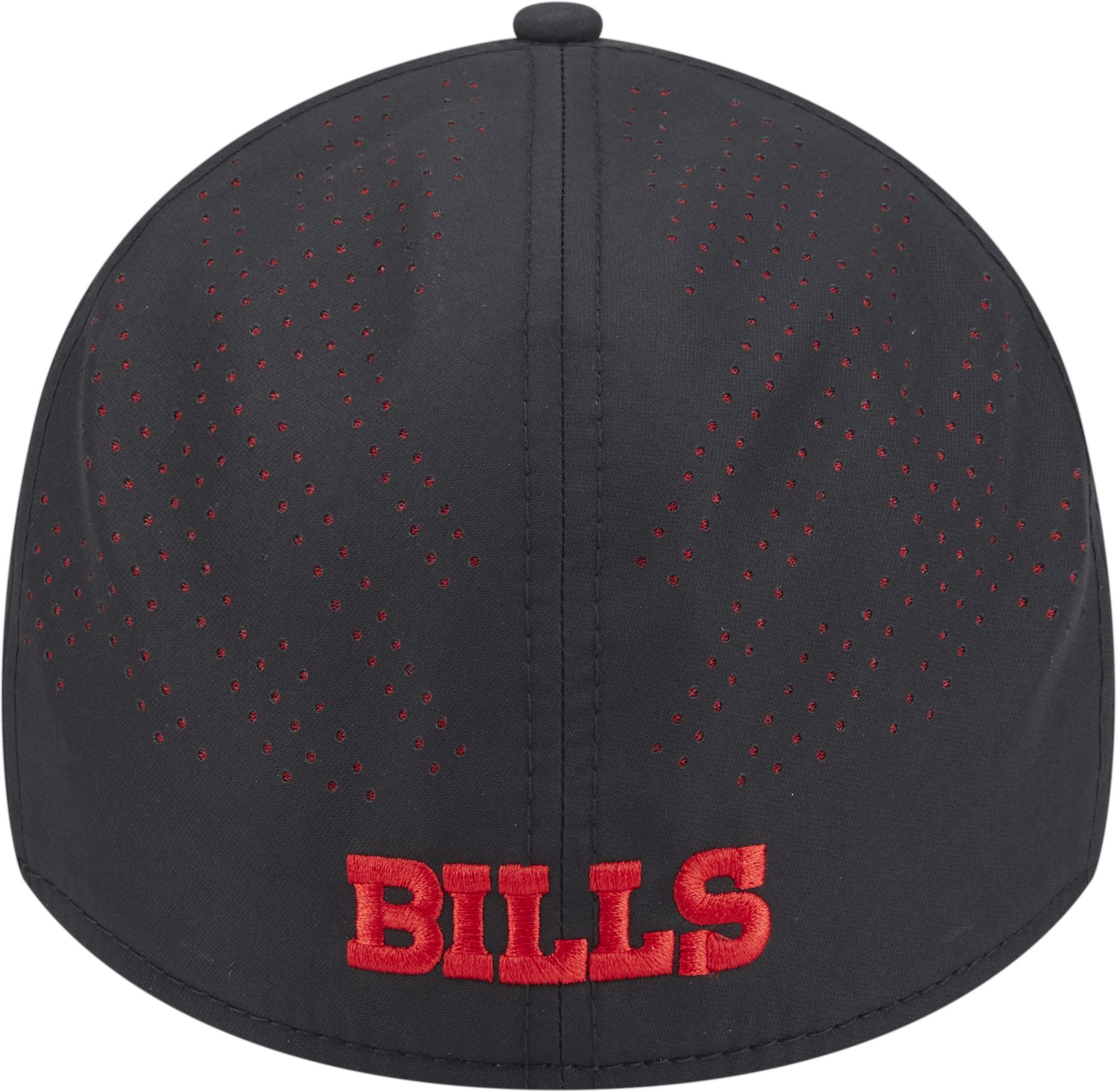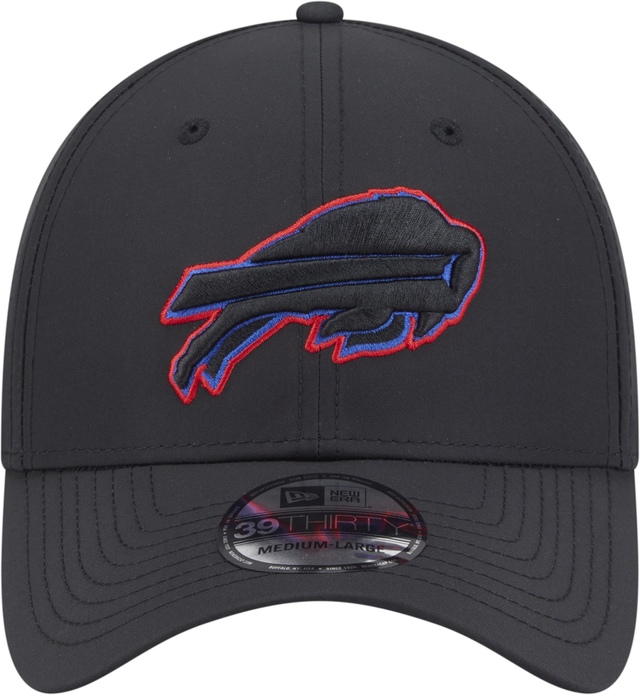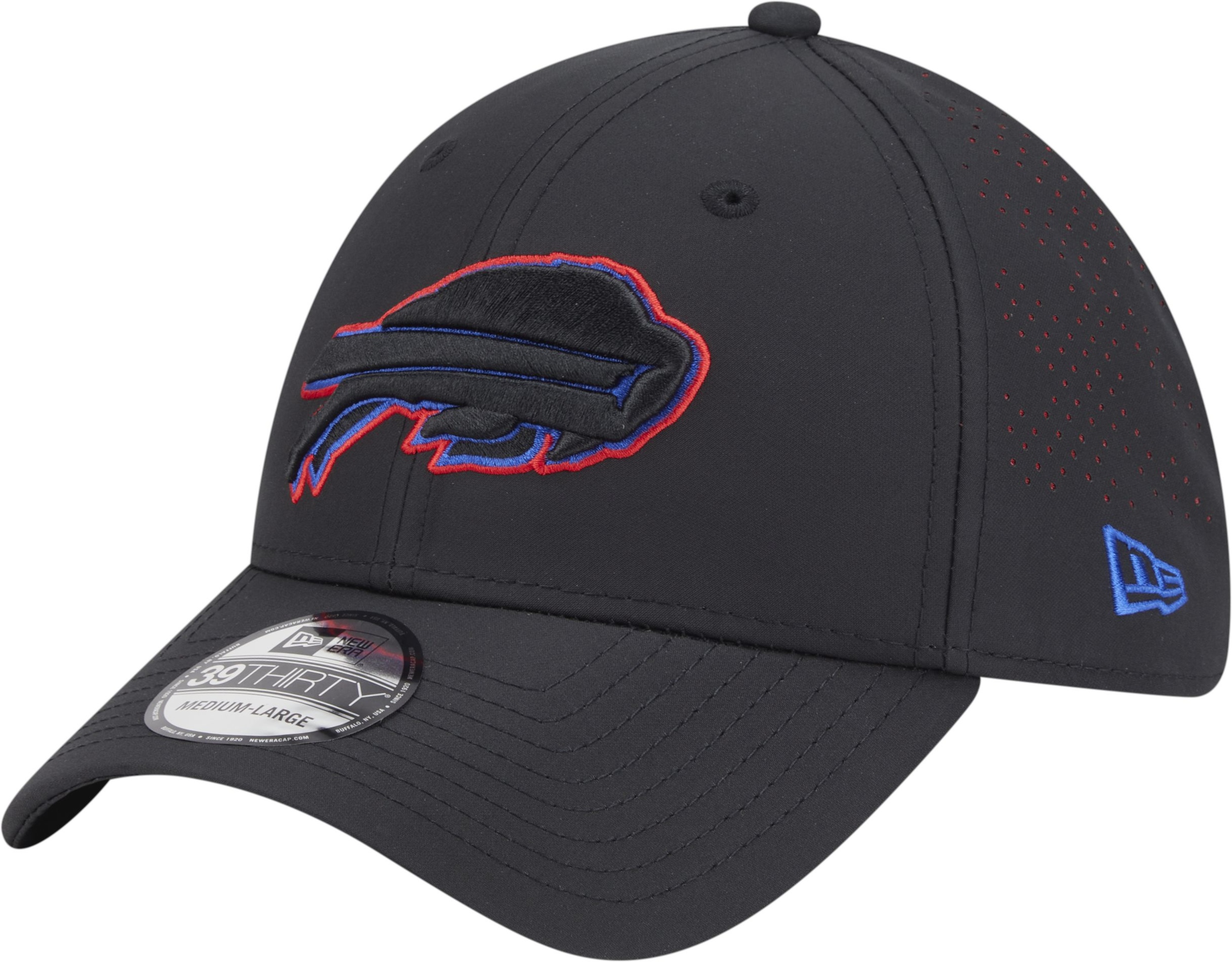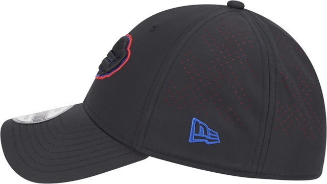 Show your support for the Buffalo Bills with the Buffalo Bills New Era 39THIRTY Night Cap. This stylish ball cap features an all-black featherweight polyester construction with a tonal Bills logo and team colour accents. The perforated panels on the medium and rear sections add a unique touch, while the team wordmark on the back completes the fashionable look.
