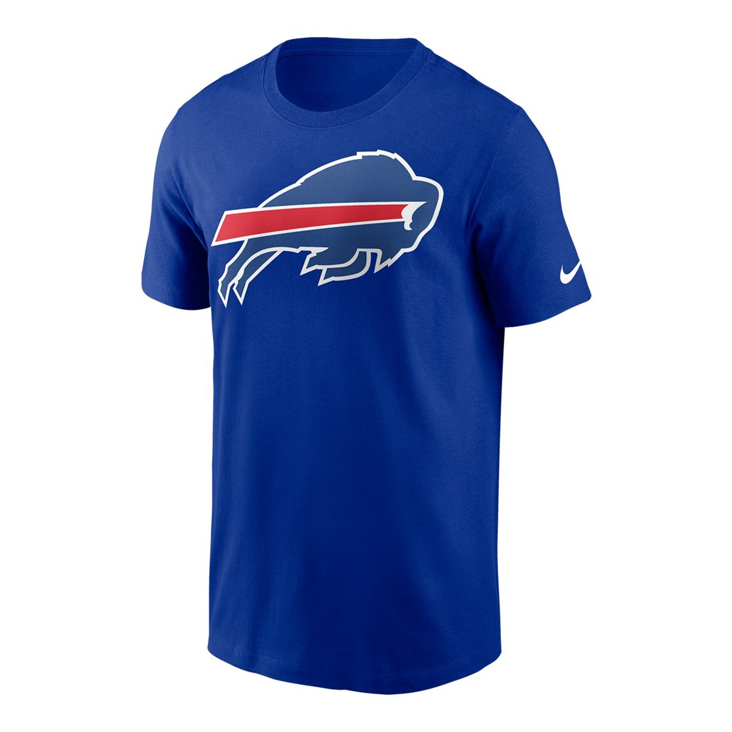 Buffalo Bills Nike Logo Essential Cotton tee with short sleeve crew neck and a graphic screen printed on the chest and the Swoosh screened on the left sleeve.