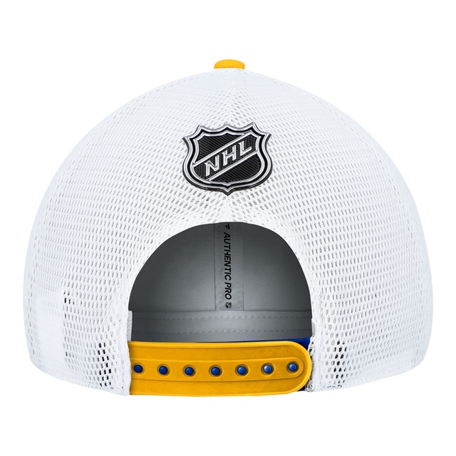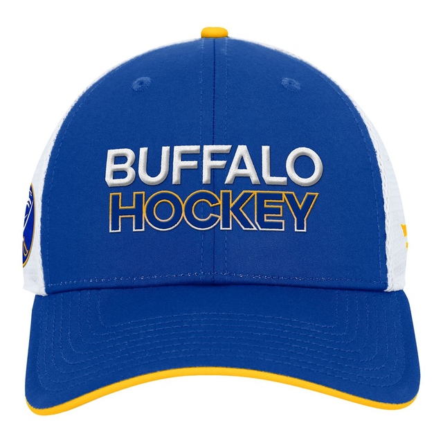 Elevate your game-day look with the Buffalo Sabers Fanatics Authentic Pro Rink Structured Trucker Cap. This officially licensed NHL accessory boasts the team's iconic colors, putting your fandom on full display. The structured trucker design offers a classic, sporty silhouette, while the adjustable snap-back closure ensures a custom fit. Whether you're cheering on the Sabers from the stands or repping your team spirit around town, this cap is the ultimate way to showcase your hockey pride. Don the Fanatics Authentic Pro Rink Trucker and get ready to turn heads with your game-day style.