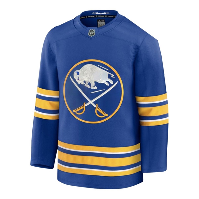 The Buffalo Sabres Fanatics Home Premium Jersey offers an authentic on-ice look for passionate hockey fans. This premium jersey features realistic team details with sewn tackle twill and high definition embroidery of the crest and shoulder patches, molded after what your favourite team wears on the ice. Made from 100% recycled polyester fabric, it combines team spirit and eco-consciousness.