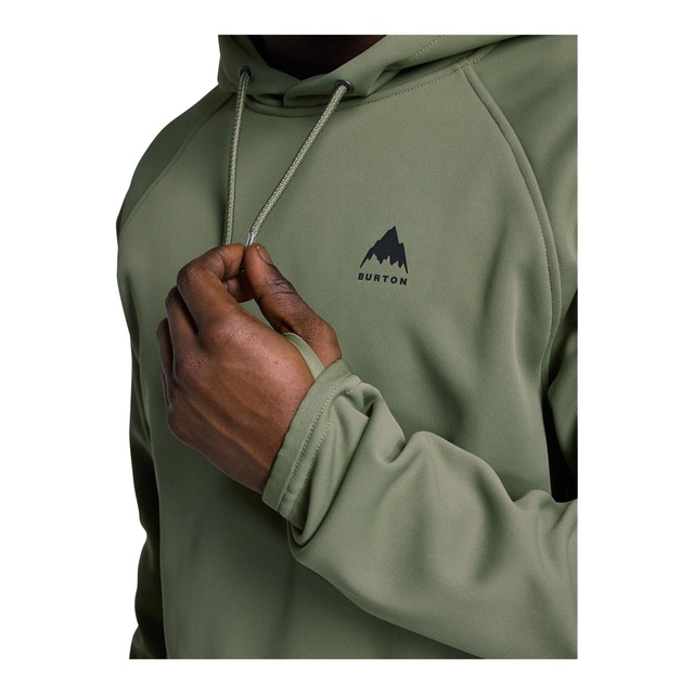 Riding all day in your cotton hoodie sounded like a good idea until you started getting wet and cold. Well, the men's Burton Crown Weatherproof Pullover Fleece is techy enough for mountain days and laid-back enough for chilling in town. It's the answer to riding all day in a sweatshirt. Pull up the hood, and consider yourself ready for just about anything.