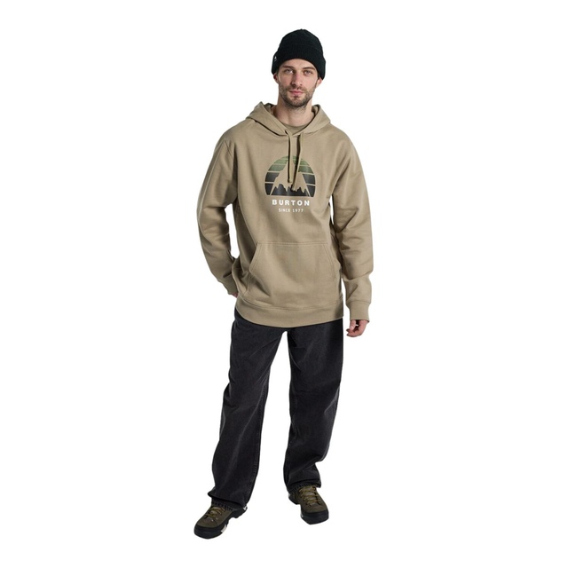 Bring the mountain vibes wherever you roam in the Burton Underhill Pullover Hoodie. This regular-fit sweatshirt surrounds you in soft, organic cotton and recycled poly fleece while the jersey-lined hood and ribbed cuffs lock in warmth. Stow must-haves in the kangaroo pocket and rep Burton's laid-back style with the screen-printed logo. Built for unmatched coziness, this pullover hoodie makes every day an adventure.