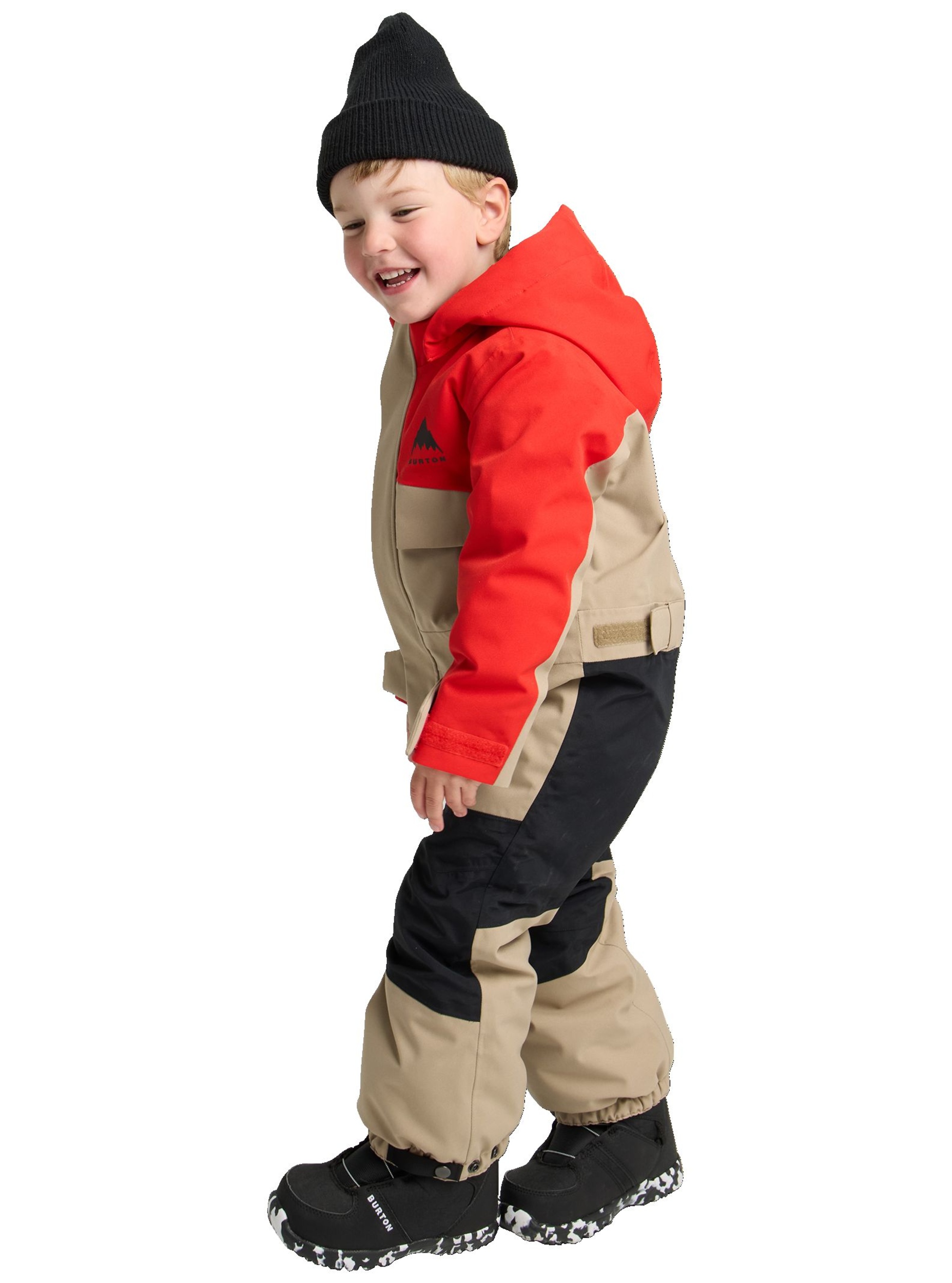 Sledding, learning to ride, and playing in the snow are only fun if you're warm and dry. It's a warm, cozy world inside the toddlers' Burton 2L One Piece. Insulated from hood to toe, it's designed to keep them happy in the snow and to keep you from stressing out while putting it on.