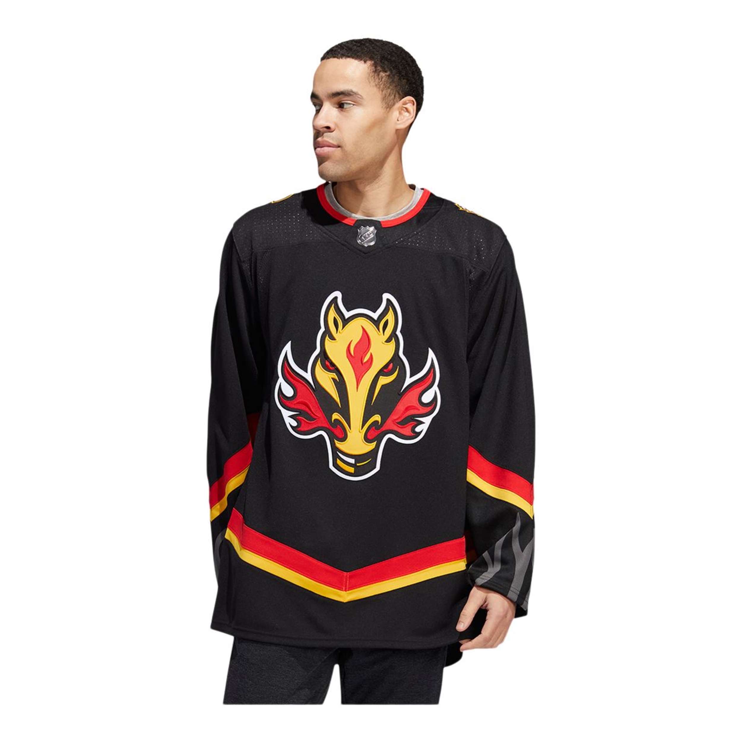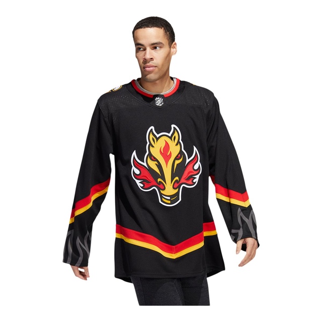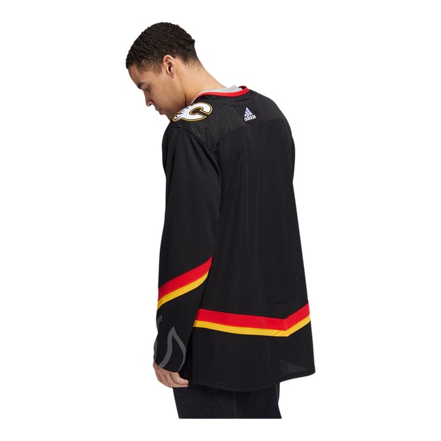 Please add it to your Wishlist for a notification when it’s back.Playing hockey on the road can be tough. Pull on this adidas away jersey, and show your support for the Calgary Flames as they work hard to win. The piqué fabric is the same as the players wear. AEROREADY keeps you dry and focused as you gather in your fan cave to watch the game. Made with 100% recycled materials, this product represents just one of adidas's solutions to help end plastic waste.