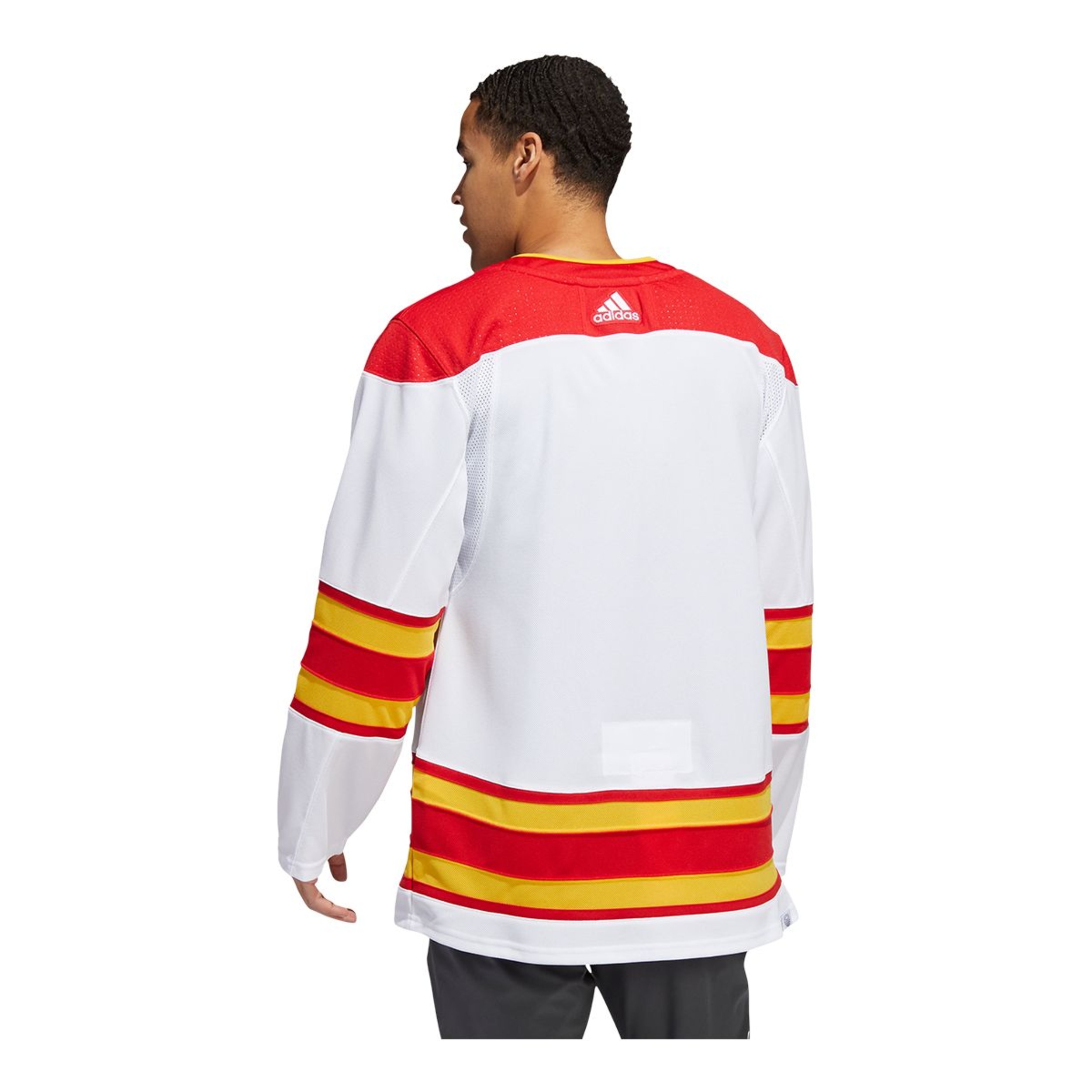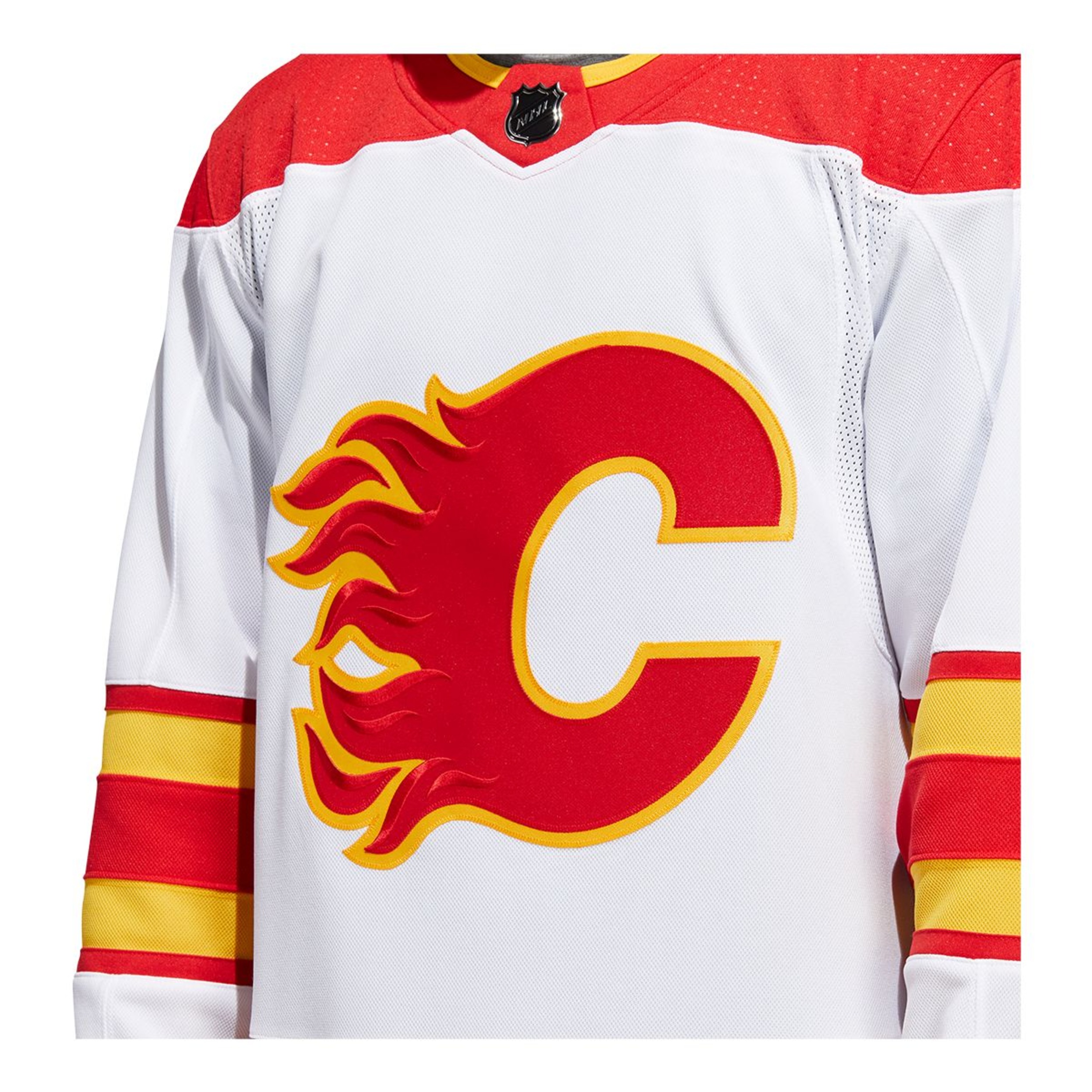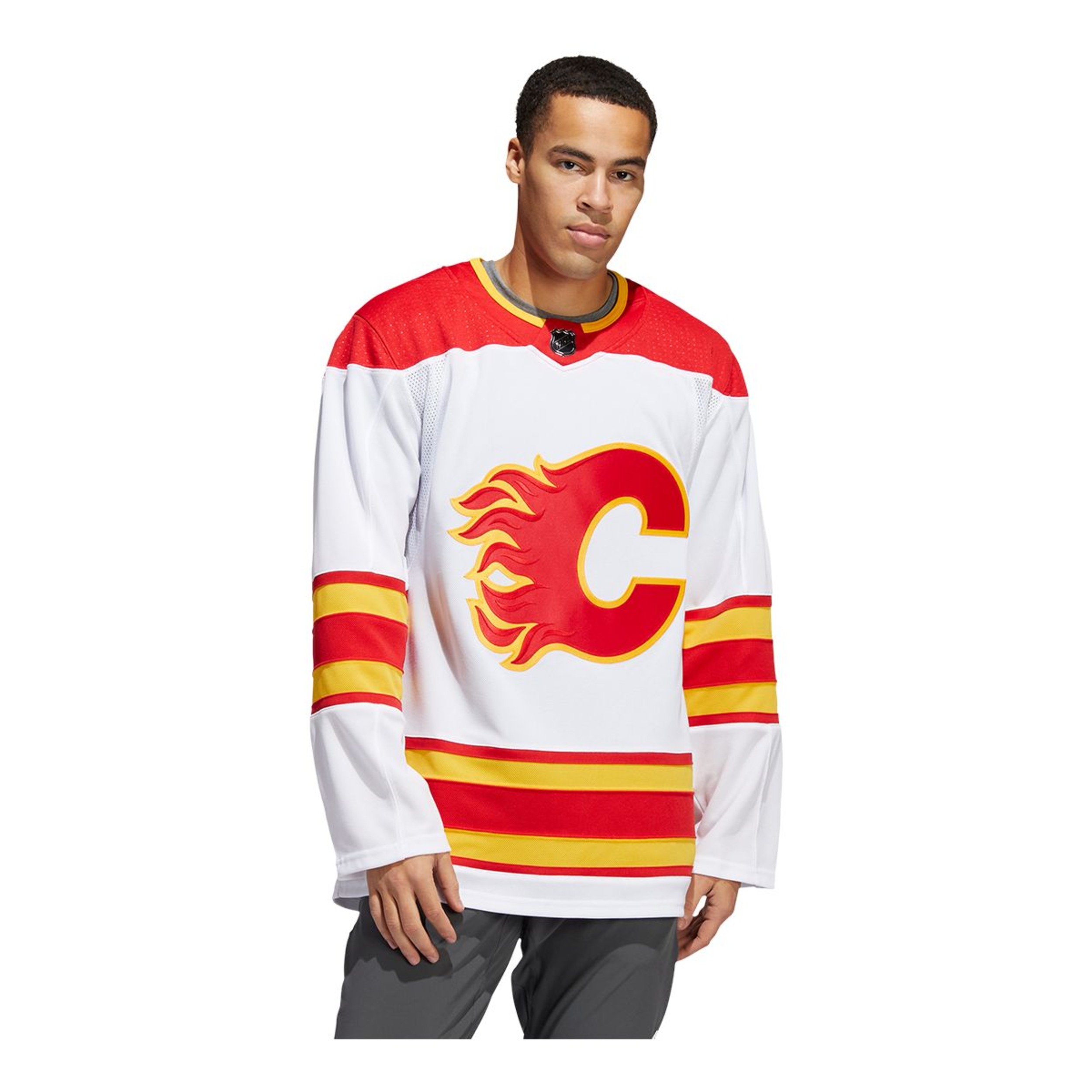 Playing hockey on the road can be tough. Pull on this adidas away jersey, and show your support for the Calgary Flames as they work hard to win. The piqué fabric is the same as the players wear. AEROREADY keeps you dry and focused as you gather in your fan cave to watch the game. Made with 100% recycled materials, this product represents just one of adidas's solutions to help end plastic waste.