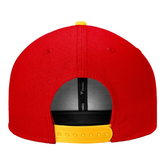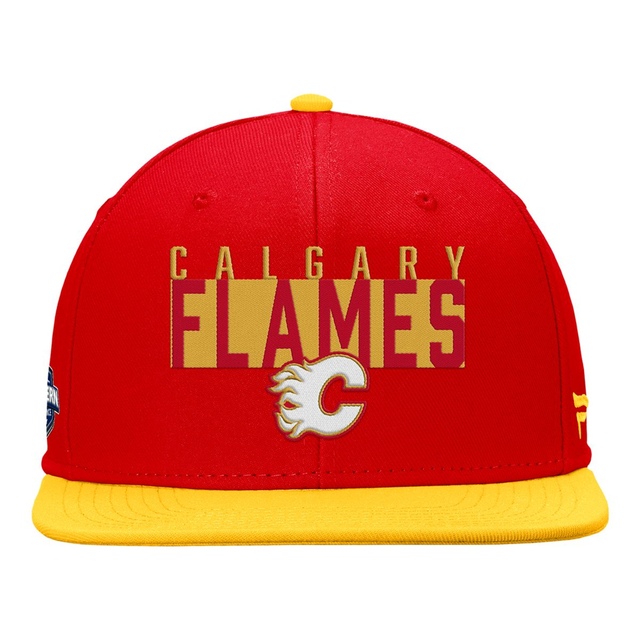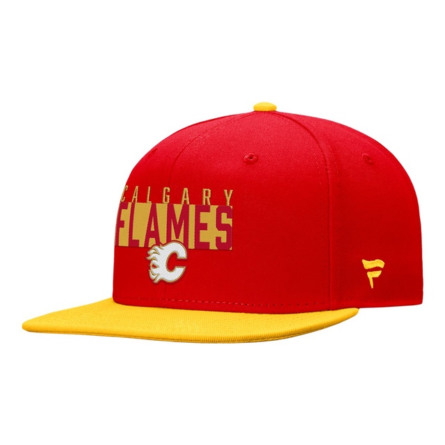 Bring the heat to the stands with the Calgary Flames Fanatics Fundamental Color Blocked Snapback Cap. This officially licensed NHL cap is the perfect way to show your team pride in style. Featuring a bold color-blocked design in the Flames' signature red and yellow hues, the embroidered team logo takes center stage for a classic, game-day look. The adjustable snap-back closure ensures a custom fit, so you can rock this cap from the rink to the streets without missing a beat. Whether you're cheering on the home team or just want to add some fiery flair to your look, this Fanatics cap is a must-have for any diehard Flames fan.