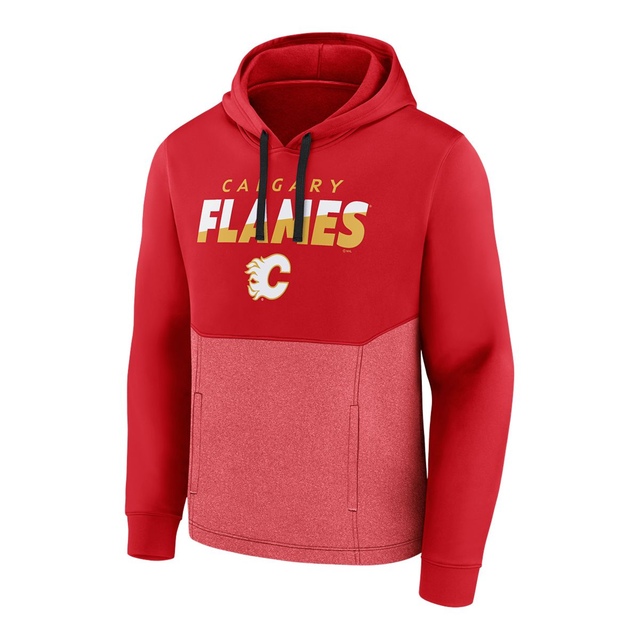 Wear your fandom for all to see with this Calgary Flames Fanatics Slash Attack Hoodie. With its two-tone design and bold Calgary Flames graphics on the chest, this Fanatics Branded pullover is an eye-catching way to rep your favourite team. As soon as chilly weather arrives, reach for this hoodie and showcase your Flames pride.