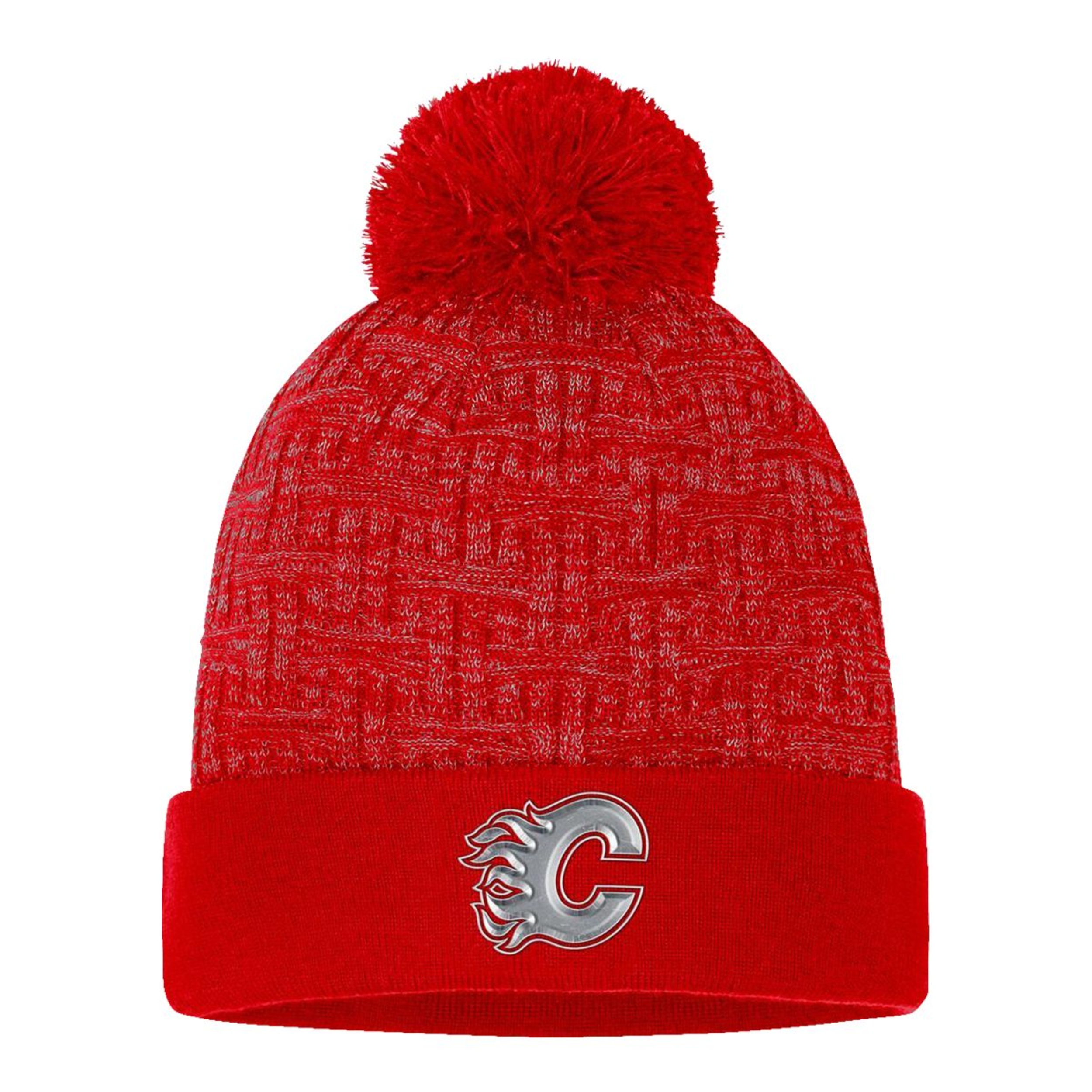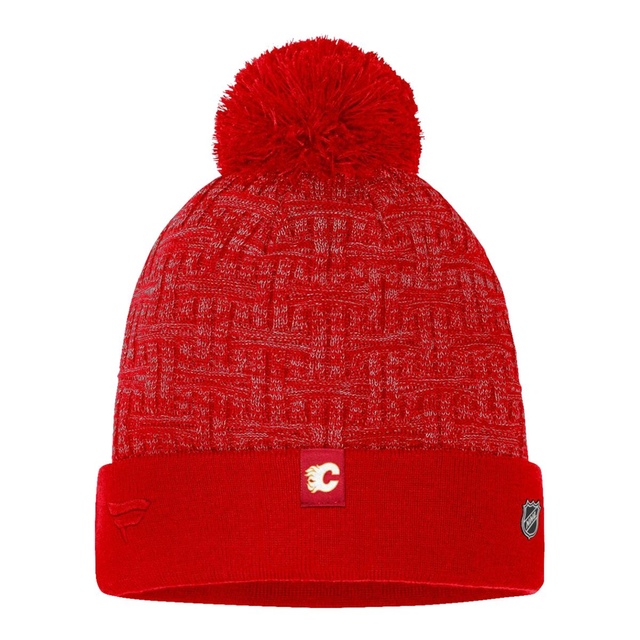 The Calgary Flames Fanatics Women's Authentic Pro Road Cuffed Pom Knit is an officially licensed, stylish acrylic knit hat with a cuffed design and pom pom accent on top. Part of the Authentic Pro Road collection, this warm and cozy knit hat features the Calgary Flames logo, making it a must-have for any female fan to show team spirit during the hockey season.