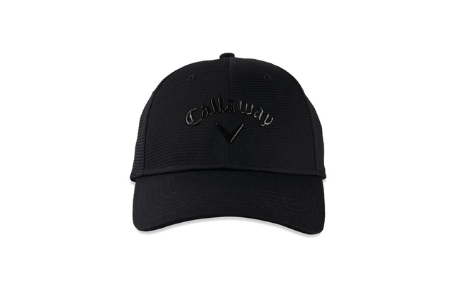 The Callaway Men's Liquid Metal Golf Cap provides superior sun protection with its 30+ UV protection performance fabric featuring a unique metallic logo. The structured mid-profile design offers a modern style while the adjustable Velcro closure ensures a comfortable, customized fit.