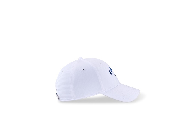 The Callaway Men's Liquid Metal Golf Cap provides superior sun protection with its 30+ UV protection performance fabric featuring a unique metallic logo. The structured mid-profile design offers a modern style while the adjustable Velcro closure ensures a comfortable, customized fit.