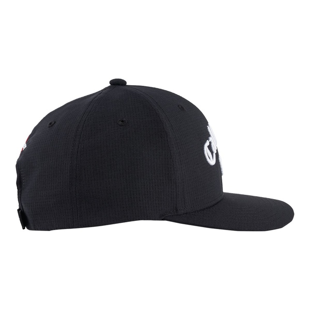 The Callaway Men's Tour Performance Pro Cap offers comfort and sun protection for the golf course. A semi-structured design with a mid-profile fit stays secure in windy conditions. UV protection protects your skin from harmful sun rays for extended play. This golf cap combines sweat-wicking and UV-blocking features to support your game in style.