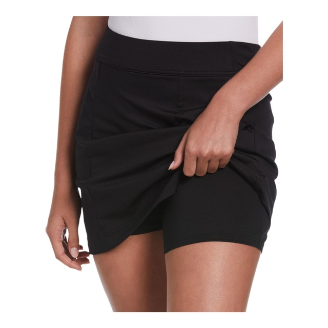 The Callaway Women's Tummy Control Skort is designed for style and performance. Featuring stretch fabric for maximum movement, it includes a slimming power mesh panel for tummy control and a four-way stretch inner short for unrestricted motion. Built with Opti-Dri moisture-wicking technology and UPF 50 sun protection, it keeps you cool, dry, and shielded from UV rays.