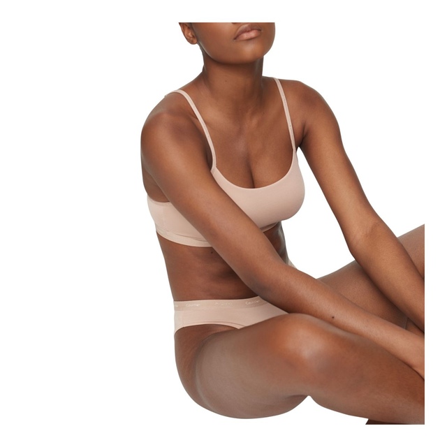 CK Women's New Comfort Logo Unlined Bralette is crafted with nylon lycra fabric for a second skin feel, shape retention, optimum comfort and support.