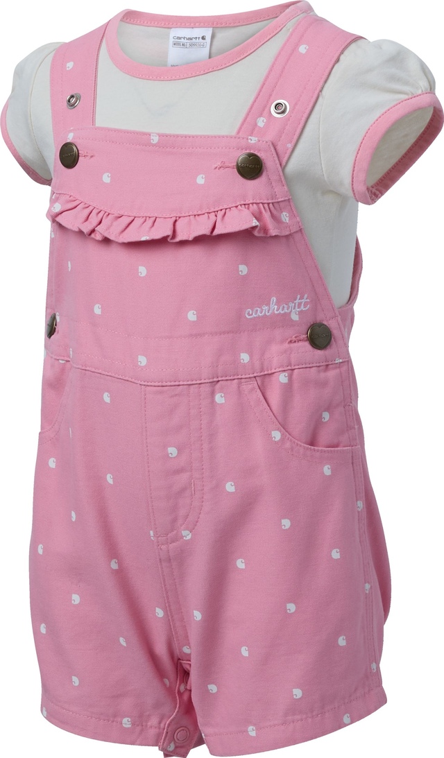 Just because it's adorable doesn't mean it's not tough. This baby girls' two-piece set from Carhartt can handle all her crawling, scooting adventures. The set includes a lightweight cotton bodysuit with a bubbly letter Carhartt print, plus a pair of matching canvas shortalls. There are snaps on both pieces for hassle-free outfit changes.
