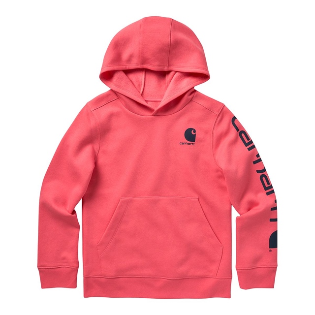 The Carhartt Kids' Graphic Long Sleeve Hoodie is a versatile pullover that delivers soft comfort. It bears the Carhartt "C" on the chest and wordmark down the left sleeve. Carhartt's dependable quality makes this hoodie ideal for kids who need comfort and style every day.