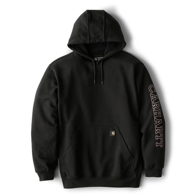 From Carhartt, a versatile midweight hoodie offering warmth and comfort. This men's cotton-blend sweatshirt is ideal for layering on cool mornings. It offers a loose fit so you can move without restriction and the roomy kangaroo pocket makes a convenient handwarmer.
