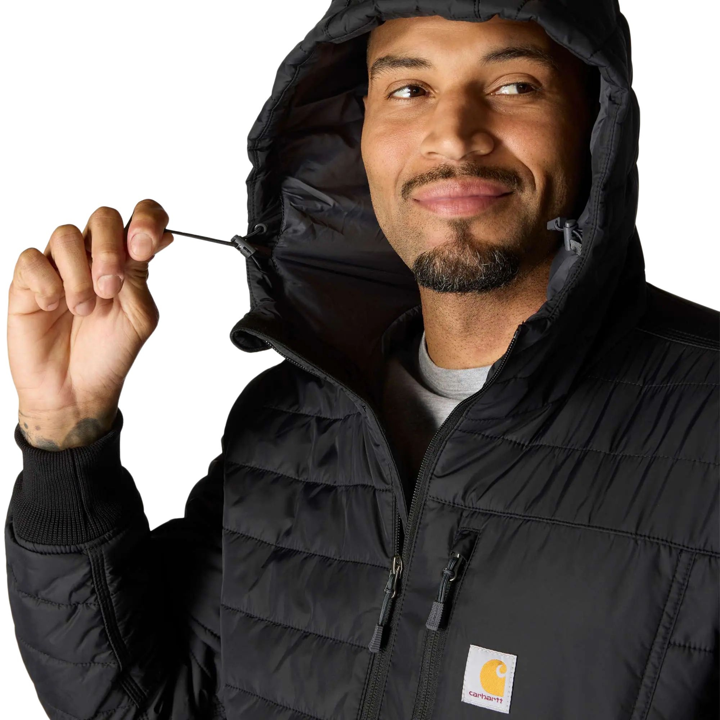 The Carhartt Men's Insulated Hooded Jacket offers ultimate weather protection with its durable yet lightweight construction. Crafted with Cordura® woven fabric and triple-stitched seams, this jacket ensures long-lasting durability to withstand tough conditions. A relaxed fit provides ample room for easy movement.