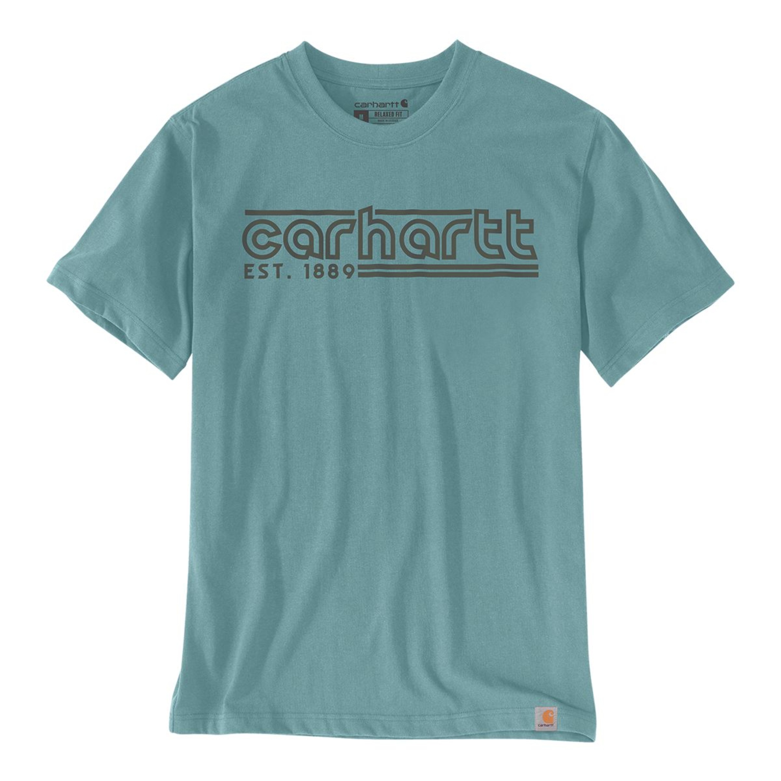 The Carhartt Men's Logo Graphic T Shirt offers the perfect blend of comfort and durability for work or casual wear. Made from a soft cotton and polyester blend, it features a relaxed fit for unrestricted movement. The signature Carhartt logo on the front adds a bold touch, while the side-seam construction minimizes twisting, keeping you looking sharp all day.