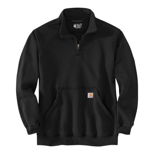 Fight the chill in this Carhartt Men's Midweight Mock Neck Quarter Zip Sweatshirt. The midweight cotton blend and roomy loose fit keep you comfortable as you work. Handwarmer pockets and a zip-up collar add extra warmth when the breeze rolls in.