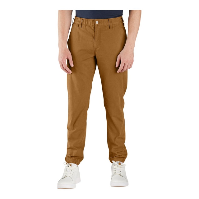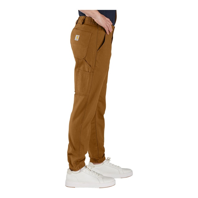 Rugged yet flexible, these Carhartt Men's Rugged Flex® Canvas Jogger Pants are made from durable canvas that's built to move. Cut for a relaxed fit, with a tapered leg and elastic cuffs. Featuring front pockets plus a utility pocket on the leg.