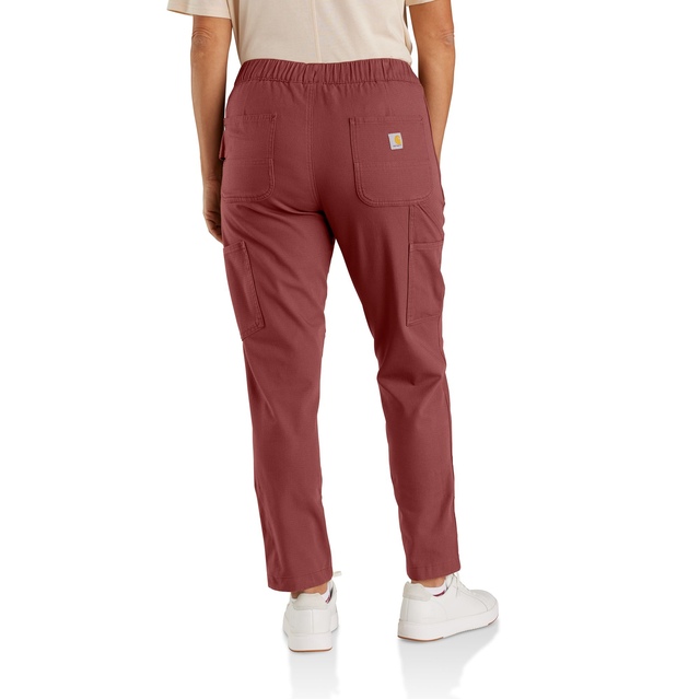 The Carhartt Women's Force® Relaxed Fit Ripstop Pants are built to withstand tough conditions while offering comfort and flexibility. Made from a stretchable, moisture-wicking ripstop cotton blend, these pants keep you cool and dry. With a relaxed fit and tapered leg, they provide easy movement and durable comfort throughout the day.