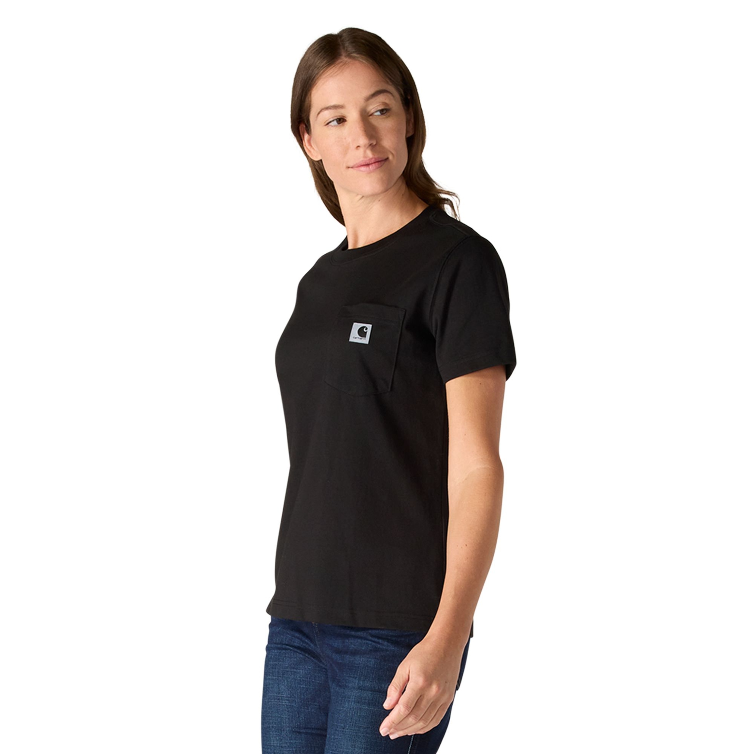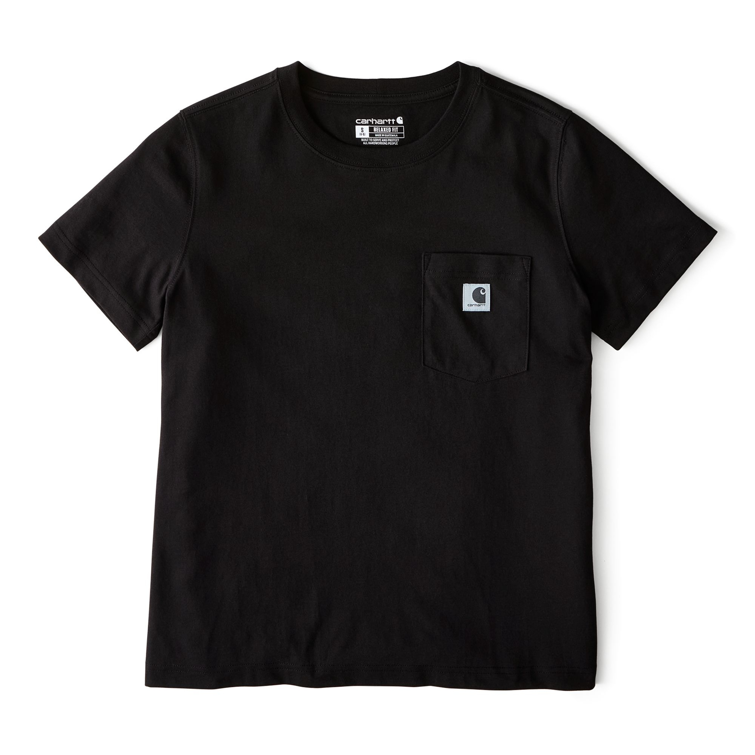 The Carhartt Women's Irvine Pocket T-Shirt is ideal for workwear and casual weekends. This durable shirt features a reinforced pocket and a rib-knit collar and cuffs that maintain their shape. Designed for a relaxed fit, it offers everyday comfort and a closer-to-body feel.