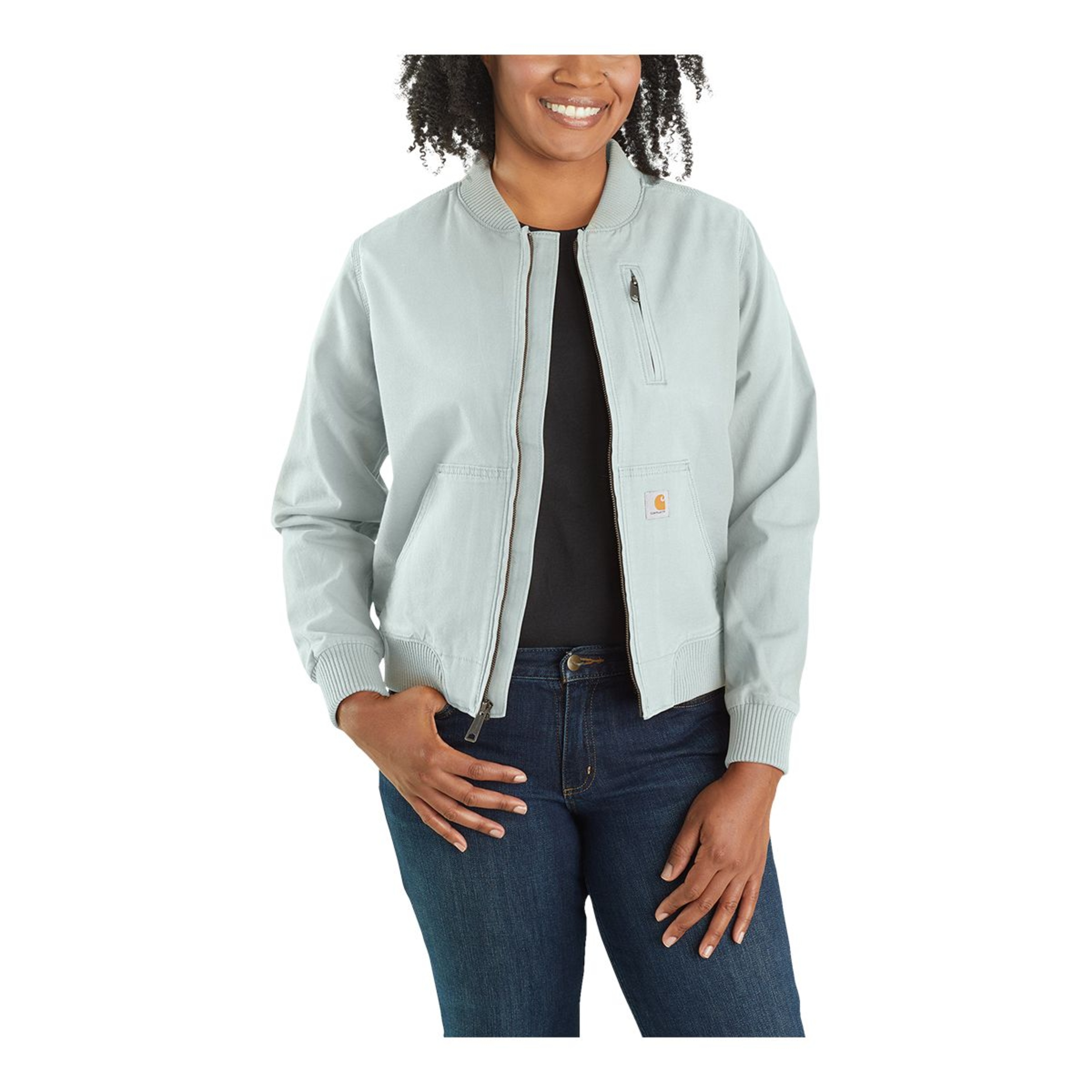 Carhartt's workwear roots come though in this women's bomber jacket. The stretch canvas build supports a full range of motion, and the jacket's mesh lining enhances breathability. There's one chest pocket and two handwarmer pockets.