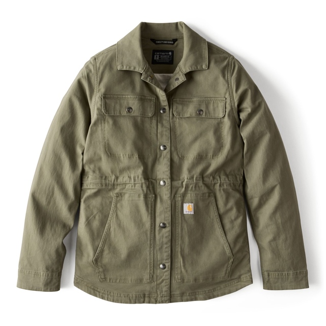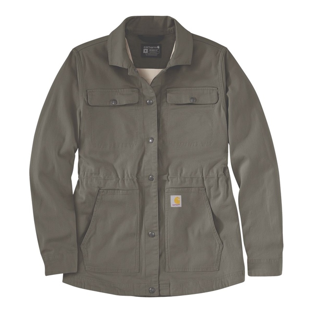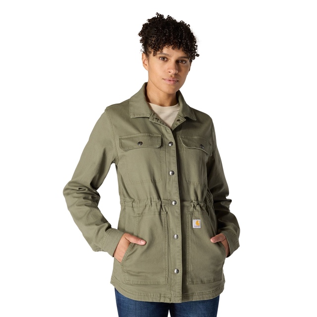 The Carhartt Women's TENCEL™ Relaxed Fit Canvas Coat sets the bar for comfort and durability. Made from tough canvas and enhanced with TENCEL™ fibres for breathability and softness, it features an adjustable waist and cuffs, a droptail hem for extra coverage, and secure pockets both inside and out for added functionality.