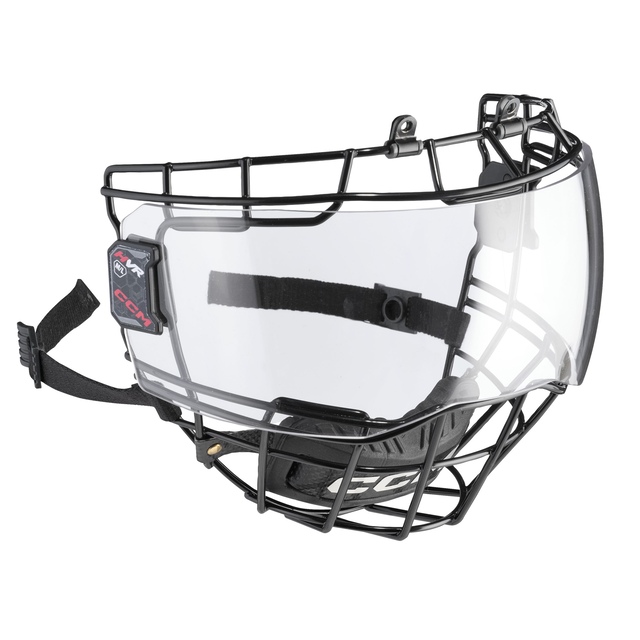 The CCM HVR Hybrid Visor combines the optical clarity of a professional-grade polycarbonate visor with the breathability of an alloy bar cage. Its design ensures optimal vision during gameplay, featuring a toric lens that minimizes distortion and visual obstruction. Enhanced with an anti-scratch treatment, it meets B1 certification standards and is approved by CSA, HECC, and CE for reliable face protection.