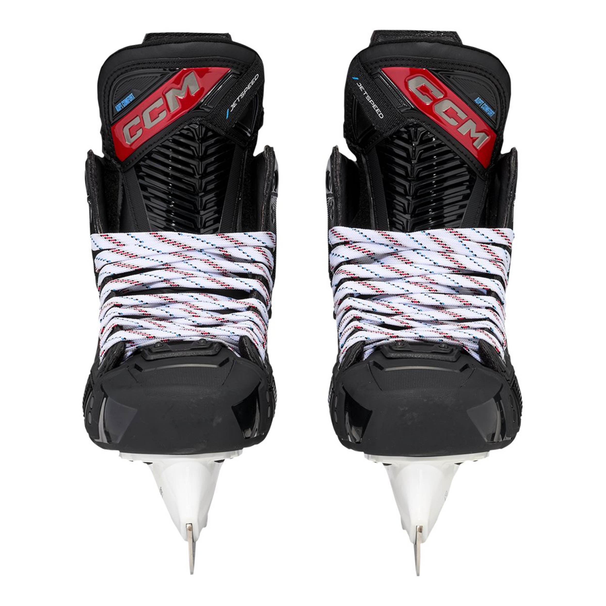 The new and improved one-piece boot Speed forms the backbone of the JETSPEED FT6 PRO hockey skates, ensuring a comfortable, game-ready feel with an unparalleled range of motion. Designed for acceleration and performance, these skates come with an ADPT comfort tongue for extra forward flexion and a great fit, and a Step Blacksteel blade for a better edge life. Their carbon coating provides exceptional gliding abilities to help you move faster on the ice. You might as well forget about the ice altogether and focus on victory.