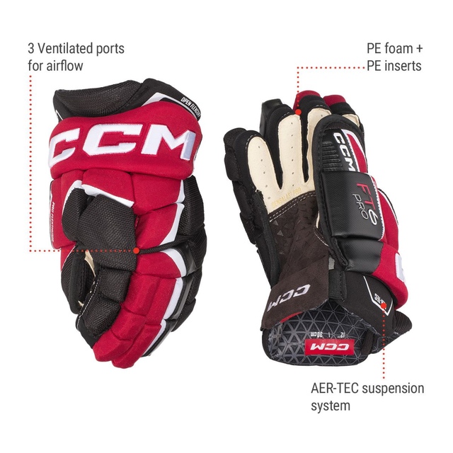 The FT6 PRO hockey gloves are cool in every sense of the word: they're comfortable, high-performance, state-of-the-art... but more importantly, they come equipped with the brand-new AER-TEC thermoregulation system. Keeping air circulation and sweat evaporation in mind, this cutting-edge design fits securely around your hand while the innovative palm construction helps reduce abrasions and improves dexterity, for some sweet dangles.