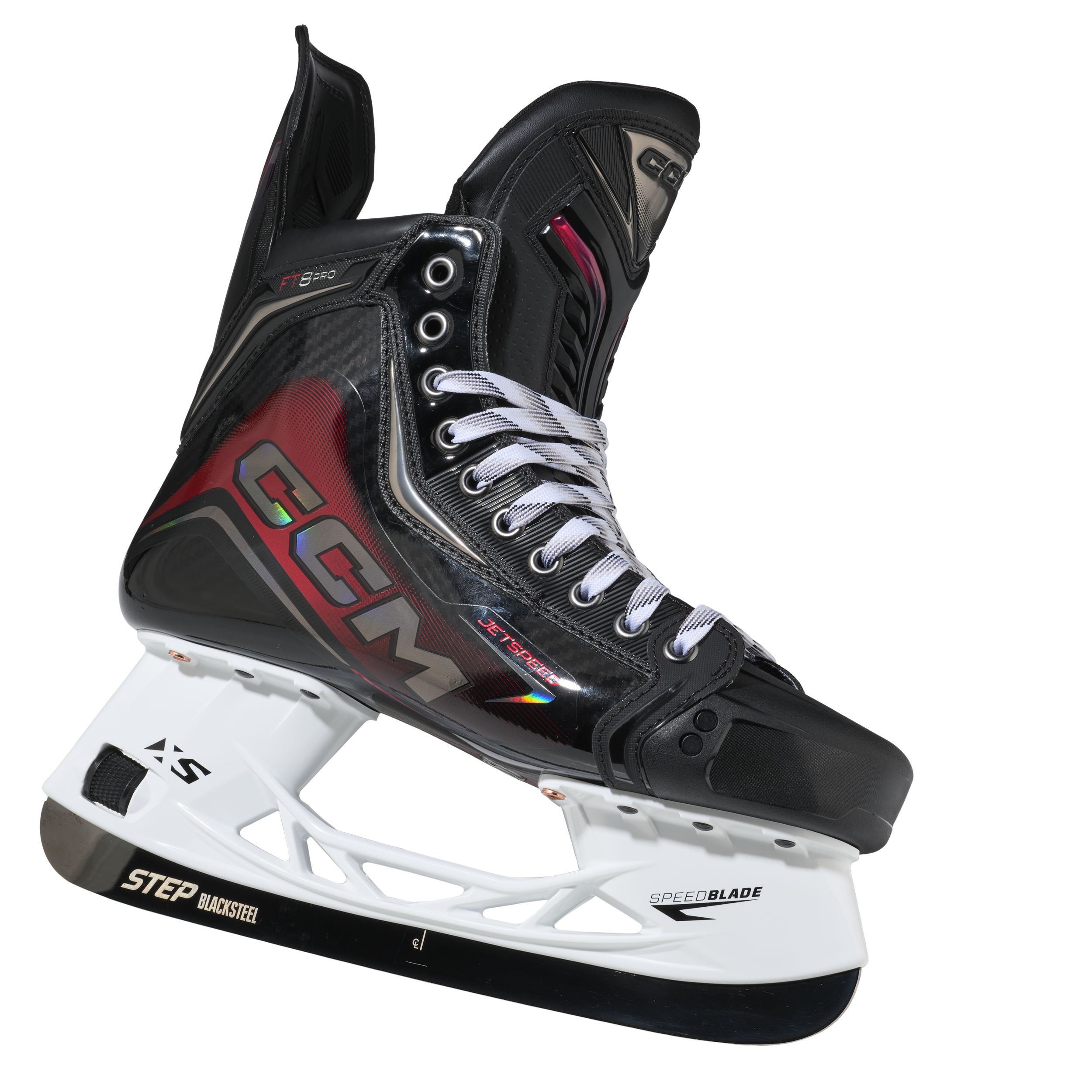 The JETSPEED FT8 PRO skates are designed for elite skaters who demand the ultimate speed, agility, and precision. Equipped with a 3D molded FORS™ composite one-piece boot, these skates excel in responsiveness and energy transfer, crucial for peak performance. The new forward pitch angle provides a more natural attack stance, allowing players to be quicker on their toes and feel more explosive in their strides. The ADPT Comfort Tongue and STEP BlackSteel runners with diamond-like carbon coating offer unmatched fit and enduring edge sharpness. The Totaldri Pro liner ensures your feet stay dry, while the seamless comfort configuration and ADPT memory Foam guarantee a custom, snug feel. Featuring the SpeedBlade XS holder for swift blade adjustments and a lightweight composite midsole, these skates are your secret weapon for gaining an edge on the ice.